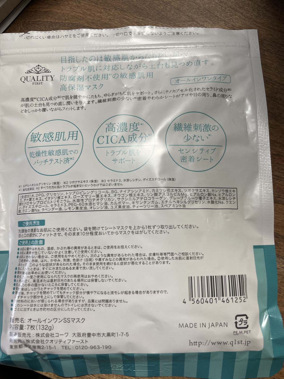 商品詳細情報クオリティファースト オールインワンシートマスク センシティブマスク