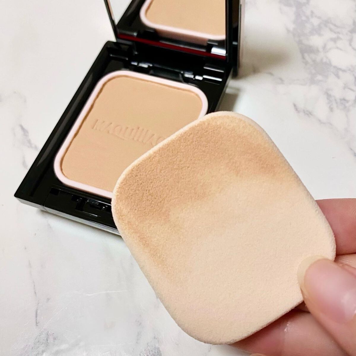ふんわりとした仕上がりながら自然なツヤ感を演出するパウダーファンデ◎ 資生堂独自の「ムースプレス製法」により、美容液水とパウダーをムース状にして固めた軽やかなテクスチャーが特徴です。 肌に溶け込むようななめらかなフィット感で、毛穴や色ムラをふんわりとカバーしてくれる感じ。