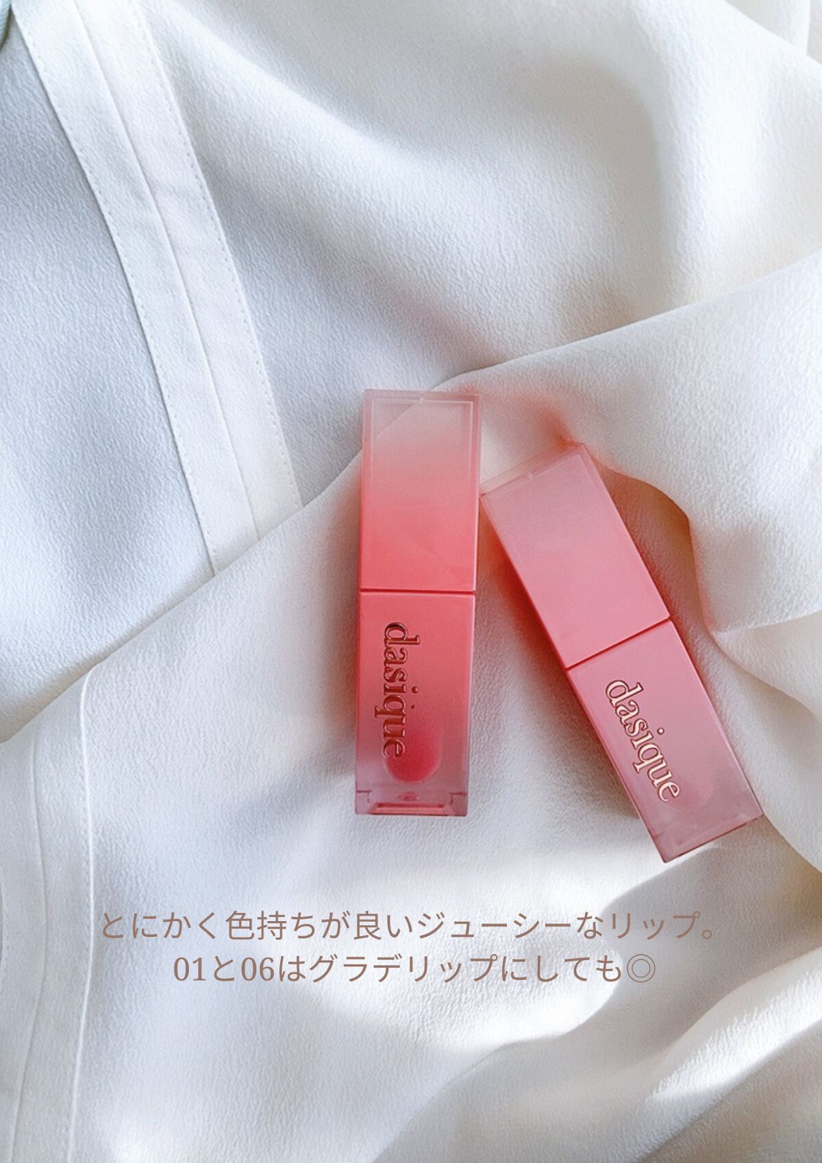 desiqueジューシーデュイティント06RoseApple色もちがよくてツヤツヤでしっかり発色してくれるティント😻軽めのテクスチャーで密着してくれる!乾燥も感じず、うるうるリップになりました🫶06はコーラルレッドって表記されてて赤っぽくても...