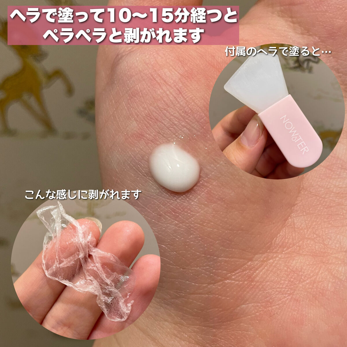 塗って乾かして剥がすコラーゲンマスクなんですが、乾くのも早く、手早く使えるのに、剥がした後の肌はひんやりヒタヒタしてて、水分を含んでるように感じる🤍 ツヤツヤでちゅるちゅる◎ わたしは、乾燥の季節、1日外にいる時とか乾燥が気になる時の朝、メイク前に使ってました♪ こういうの、厚塗りして乾かなかったり、うまく剥がせなくて失敗する事もあると思うんですが、これはスパチュラも使いやすく失敗知らず◎