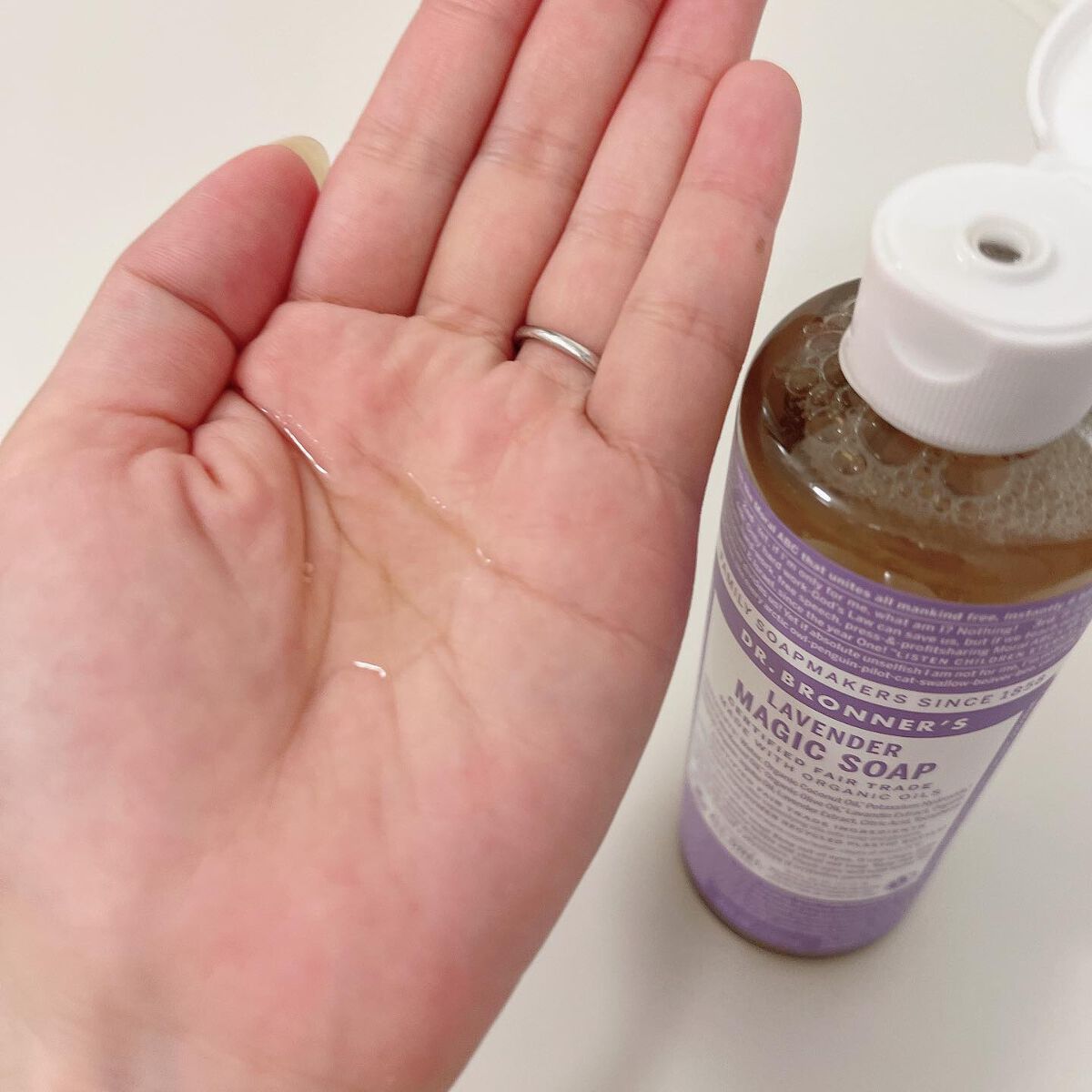 ドクターブロナーマジックソープラベンダー💜237ml1540円「天然由来100%のオーガニックソープ」ふわふわの柔らかい泡ができます🫧なめらかで優しく肌を洗えて、乾燥も気にならず使えます✨泡立てていくとラベンダーの香りが広がって心地よいです🪻...
