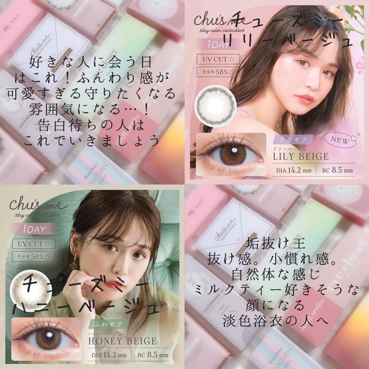 新色リリーベージュ最強にかわいいです!ふんわりフチと完璧な着色サイズでほんっとに盛れる…! 数字だけでは出せない計算され尽くした黄金比率で大きすぎず小さすぎずこっそり目を大きくできる カラコンそのものだけでなくパッケージもほんっとに大好きで、洗練されたくすみカラーが柔らかく優しい雰囲気でまさに憧れのお姉さんって感じで見惚れちゃいます𓈒𓂂𓏸♡