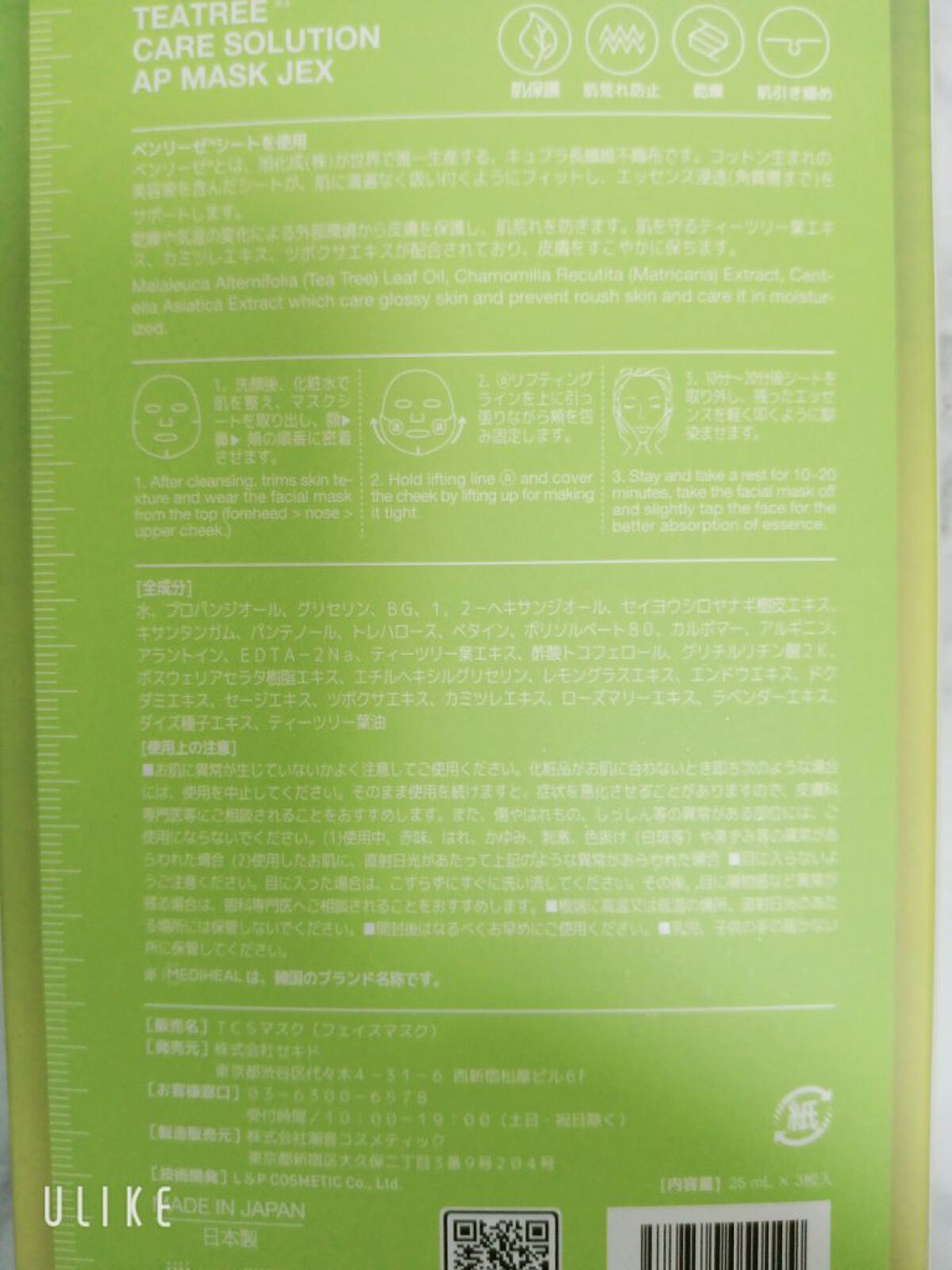 メディヒールの言わずと知れた名品。鎮静効果のあるティーツリーのフェイスマスク! 肌荒れしているときや、日焼けした後におすすめです。 使用感はさっぱりで、これだけでは保湿力が物足りないためクリームなどで蓋をすると良いと思います!