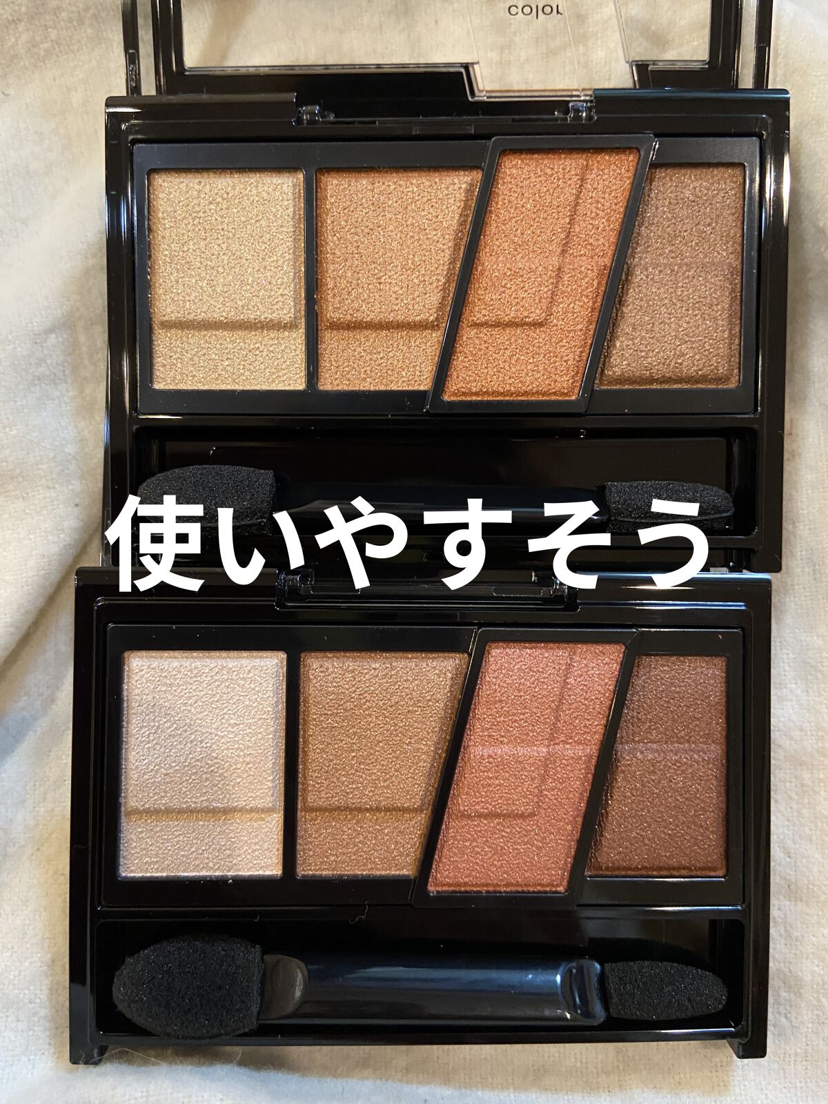 悪くない! 使いにくいかと思わせて全然いい! キラキラはないけど優しい艶がある。 質もいいわ。 イエベの人はアイホールに黄色い赤茶色のブラウンを仕込めば使いやすくなるはずー! あんまり暗くないやつ!
