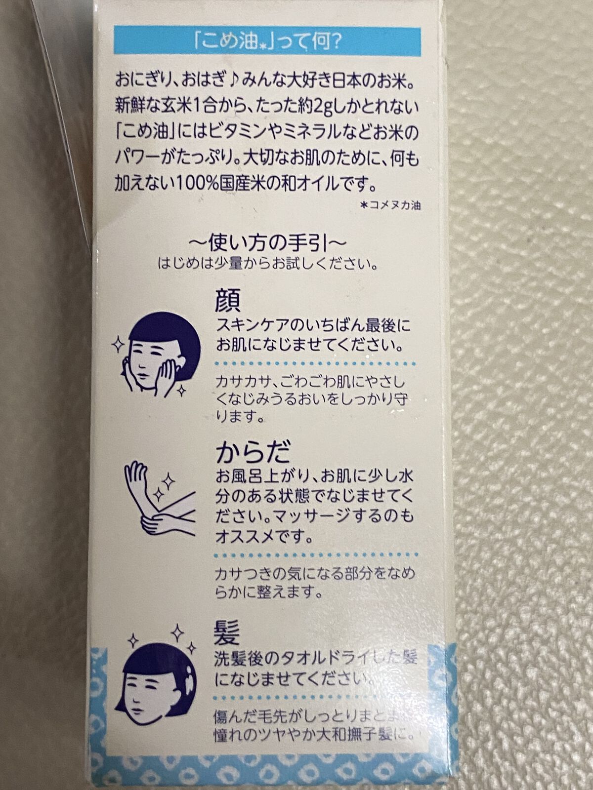 - 採れたての新鮮なお米を絞って、何も加えずに作った100%国産米の“こめ油”。ビタミンやミネラルが豊富でカサカサに乾いた毛穴肌にうるおいを与えます。
