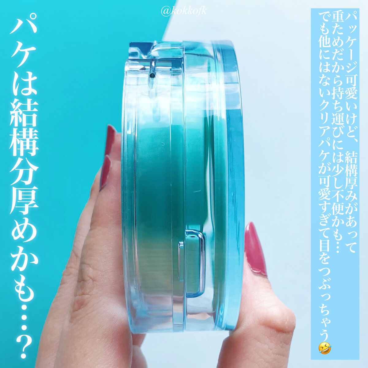 薄づきなのにしっかりカバーし肌にぴったりと密着!化粧崩れしにくく、長時間さらさらな肌をキープするクッションファンデです。 69%のエッセンスが配合されていて、肌にうるおいを与えながらひんやりとしたつけ心地が魅力◎ 涼しげなクリアケースも可愛い♡動物由来成分を使わず、敏感肌でも使いやすい低刺激処方です。