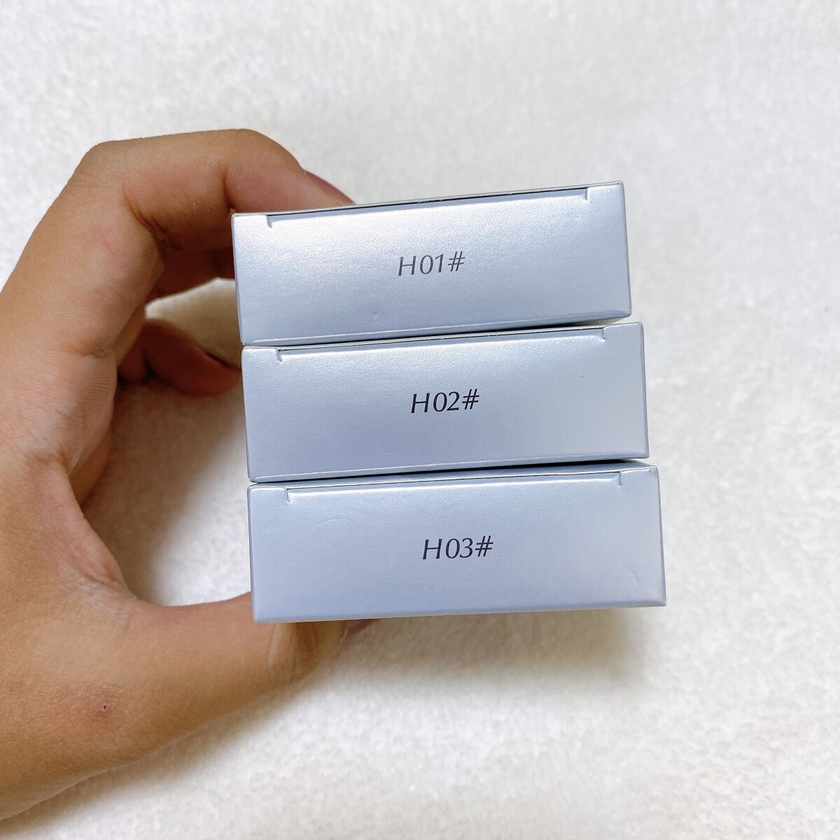 韓国発のコスメブランドNAMING.のハイライター✴︎ メイクや肌トーンに合わせた3色展開です 02はほんのりピンクみのある透明感パールで、肌が明るくみえる!! アイシャドウとして使っても光でキラキラに輝いて見えてめちゃ綺麗✨