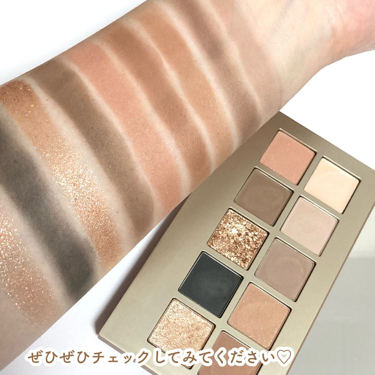 hinceニューデップスアイシャドウパレットのホリデー限定カラー(̨̡ᐢ ⸝⸝o̴̶̷̤ ̫̭ o̴̶̷̤⸝⸝ ᐢ)̧̢ 白パケが可愛い🩷 配色は甘くて優しいカラー( 💓∀💓) 今回は、左下ピンクキラキラとブラウンを中心に使ってみました⭐️