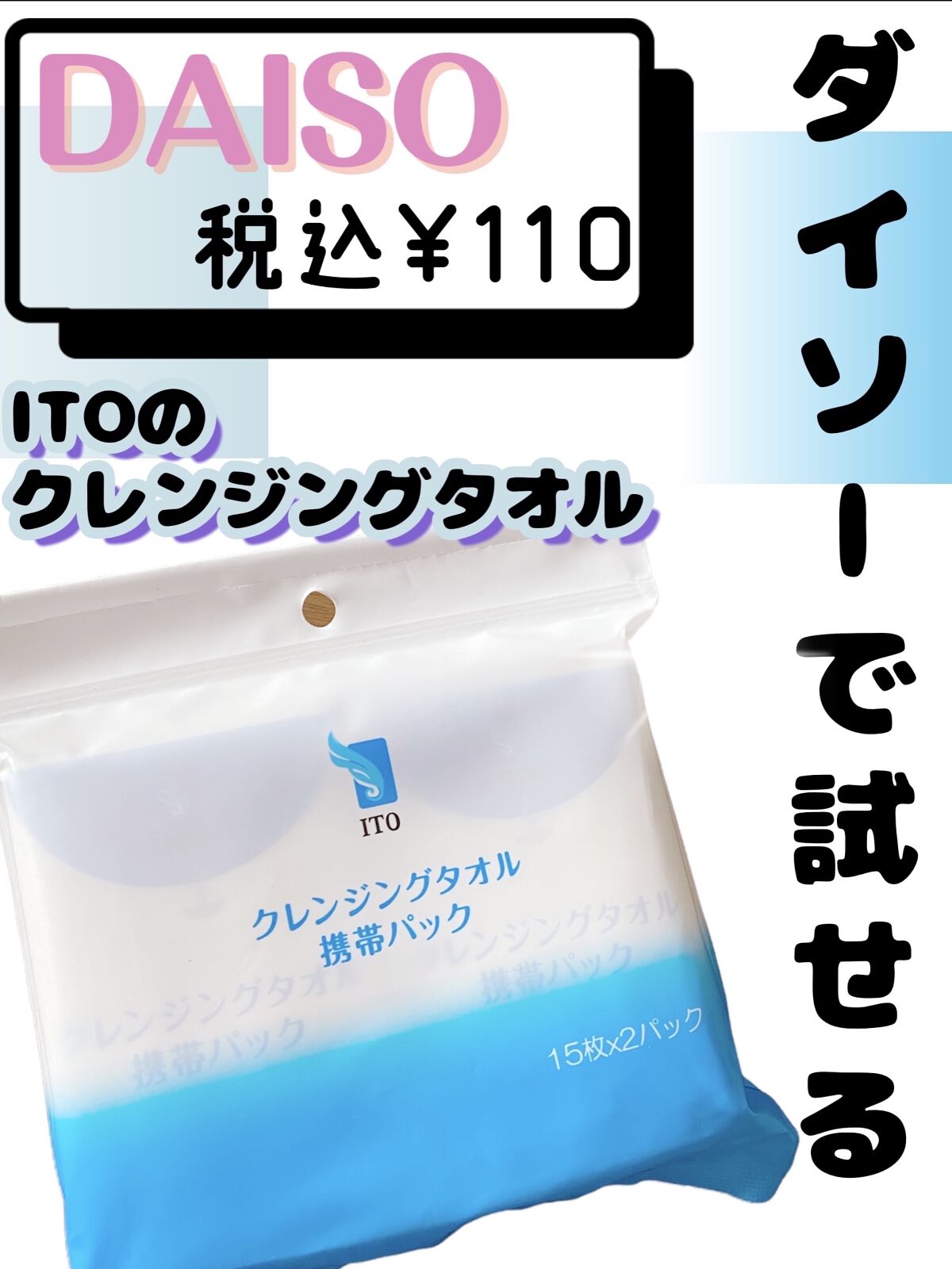 はじめまして、コメント失礼致します🙇♀️ ITOのクレンジングタオル大好きで愛用中なのですが、ダイソーに携帯用があったとは知りませんでした!探してみようと思います☺️✨