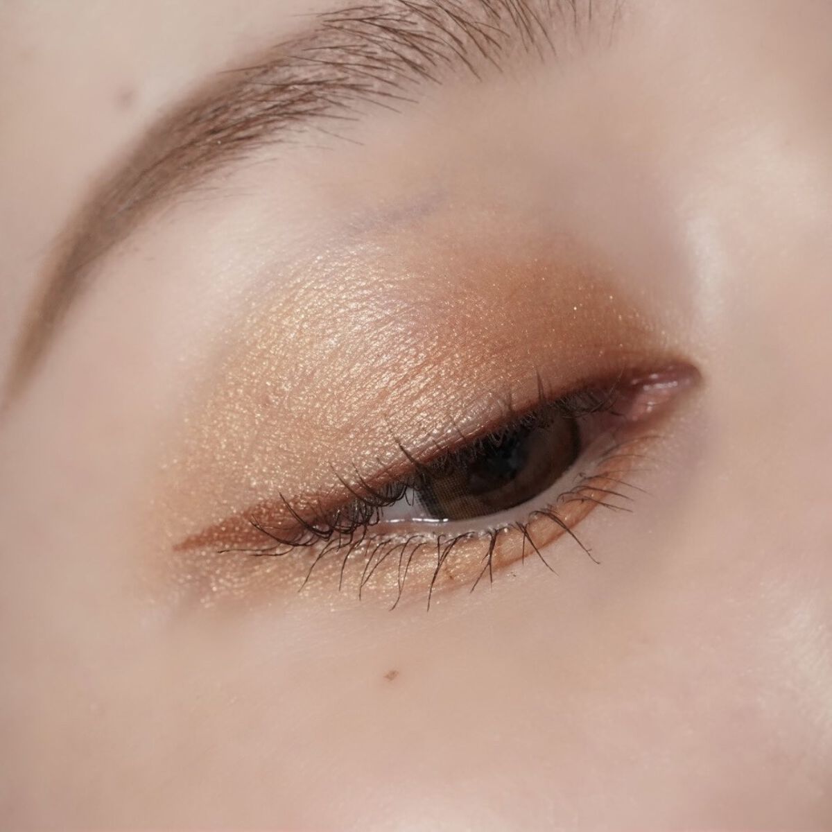よくパレットのなかで明るいカラーをベースにまぶたに広く塗ることが多いのですが、パール感のあるカラーを避ける🙆♀️! パール感たっぷりの明るいカラーは涙袋に使うぐらい光を集めてぷっくり見せてくれるので、まぶたに広く使うと腫れぼったく見えがち😓 目元を明るくみせてくれたり、次に使うアイシャドウをぼかしやすくしてくれるけど、すっ飛ばしてメインのカラーを塗っちゃう✊🏻❤️🔥 涙袋にはたっぷり塗ってぷっくり見せる🙆♀️💕 シルキースフレアイズのマットタイプはすごく優れているな〜と感じました☺️💗 赤やオレンジなどは、入れすぎると腫れぼったく見えやすいので、見せたいカラーは下まぶた目尻にのせて色をたのしむ♡♡ パール感なしの透けマットだけじゃ物足りない… そう感じさせない華やかなラメが左上に入っているので黒目上と涙袋にのせるとすごく可愛い仕上がりに😍! 厄介な左右差のお陰でマットアイシャドウが好きになりました😌💕