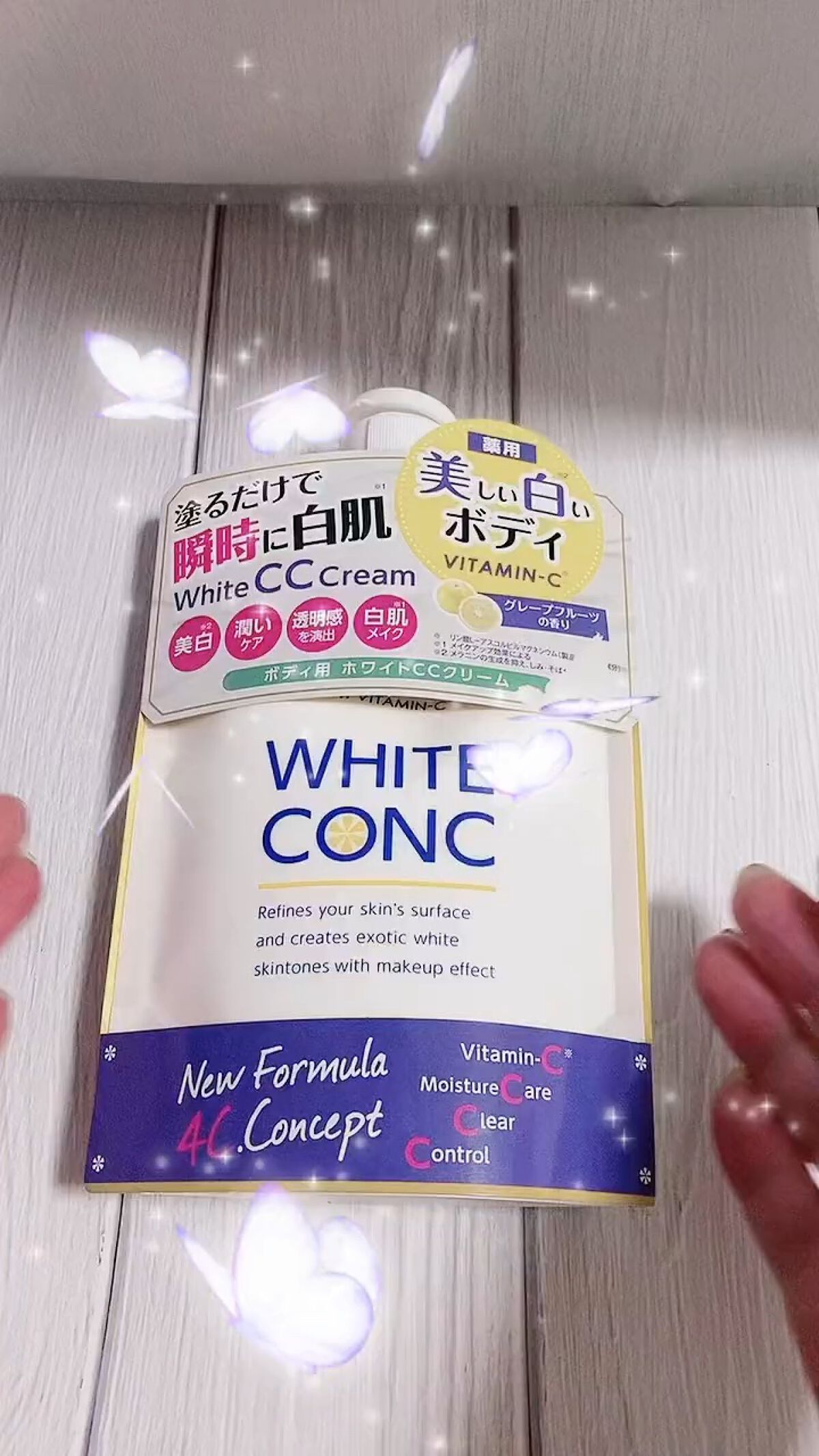 - 【医薬部外品】美白※しながら瞬時に白肌※1! ツヤ&ソフトフォーカスのニュアンスパールでツヤめく白肌(※1)に。 全身用ボディCCクリームは、ひと塗りで透明感を演出。毛穴や、肌の凹凸、色ムラを補正し肌色をコントロール。 伸びのある心地よいテクスチャー スーッと伸びてベタつきにくいテクスチャーは、足先からデコルテまで全身に使えます。 美容液成分(※2)94.1%配合! 2種のコラーゲンと3種のヒアルロン酸(保湿成分)がみずみずしい潤いとハリを与えます。 爽やかな香り フレッシュな絞りたてグレープフルーツの香り。 ※メラニンの生成を抑え、しみ・そばかすを防ぐ ※1メイクアップ効果による ※2精製水を含む 美容液から開発されたCCクリーム