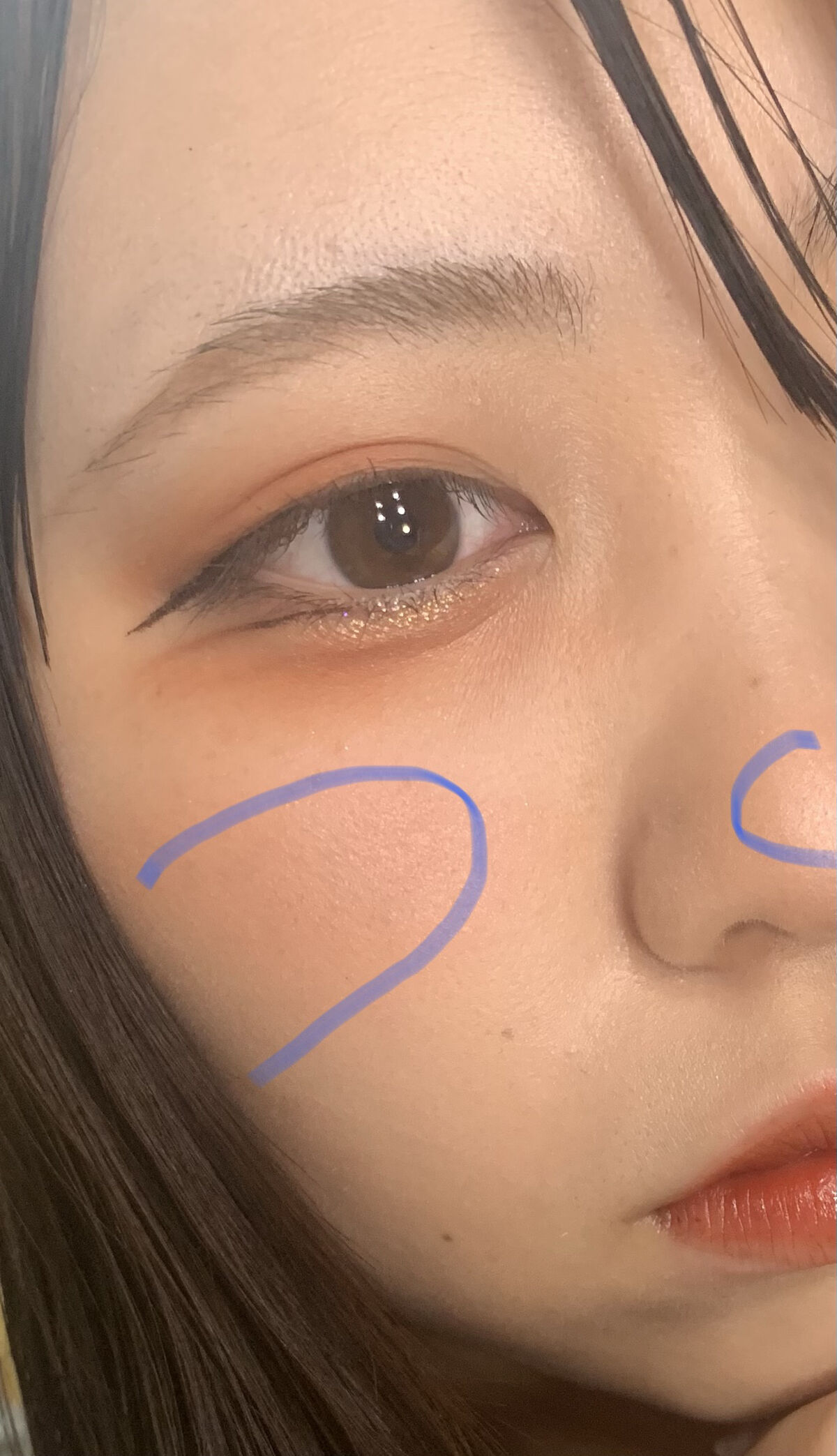この方法はとにかく鼻が高く細く見えます! 次に鼻の先端をV字にシェーディング! 小鼻に三角形に影を入れる! 鼻筋はとにかく細く! 鼻の先端より少し上めのところにちょこんと 鼻筋の脇、頬の部分にハイライトを入れます 小鼻の脇をシェーディング!