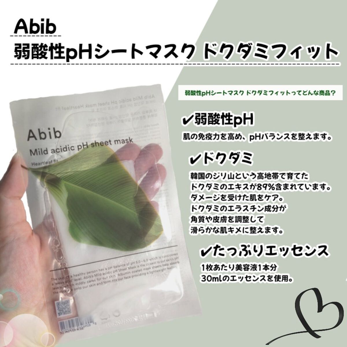 商品詳細情報Abib 弱酸性pHシートマスク ドクダミフィット