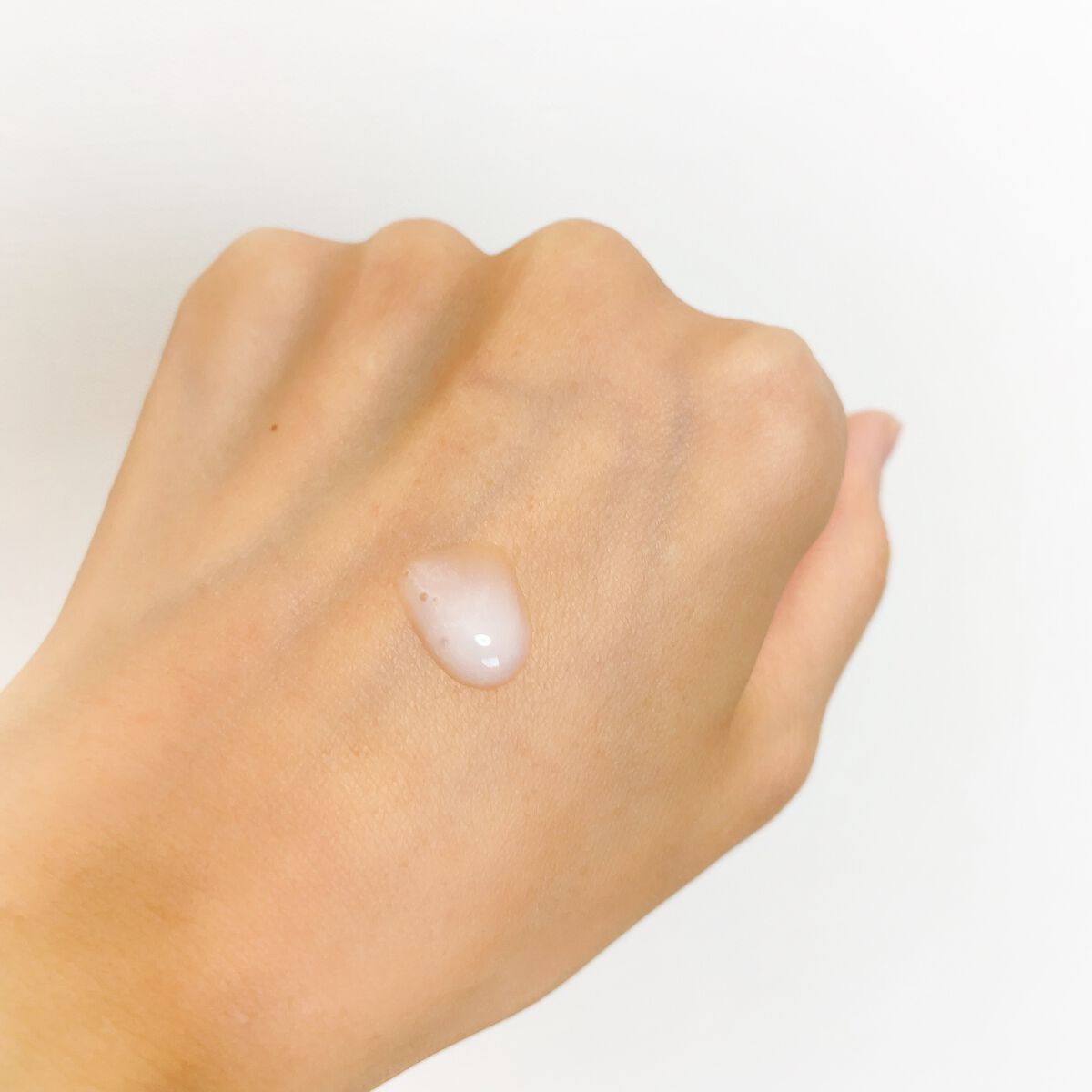 - 成分:水、DPG、グリセリン、エタノール、ジメチコン、ジフェニルシロキシフェニルトリメチコン、マルチトール、PEG-60水添ヒマシ油、メチルセリン、カルボマー、香料、キサンタンガム、BG、水酸化K、アセチルグルコサミン、EDTA-2Na、カルボキシメチル-β-グルカンNa、オランダガラシエキス、ヒメフウロエキス、加水分解シロバナルーピンタンパク、アマモエキス、チャ葉エキス、フェノキシエタノール