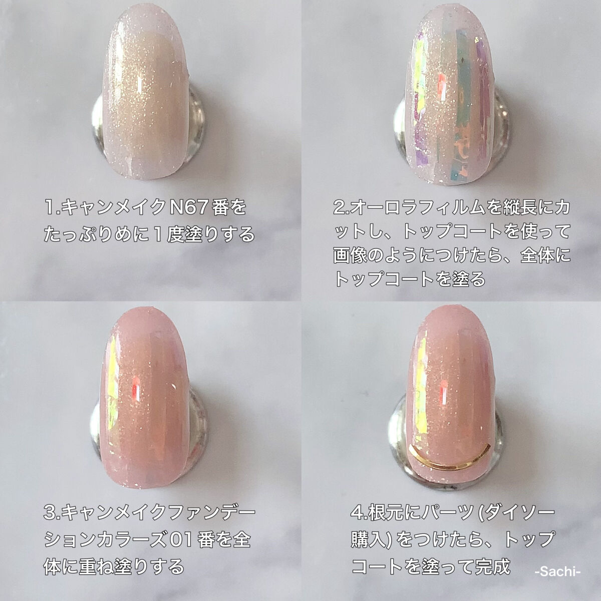 こんにちわ♡今回はキャンメイクのマニキュア2色で出来る、簡単グラデネイルのご紹介です💕先端にかけて白くなるベイビーブーマーは、美爪に見えるのでグラデの中でもとても人気デザインですよね(*´꒳`*)やり方は画像を参考にしていただければと思います...