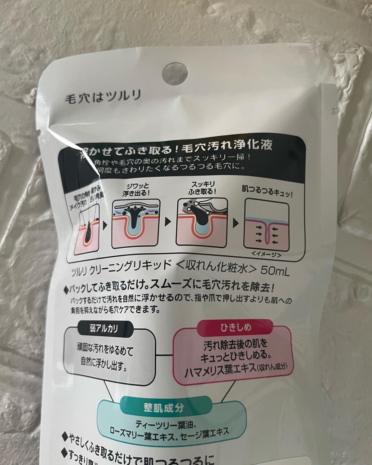 - 1回10分の毛穴スペシャルケア 毛穴、驚きのつるん! パックしてふき取るだけの弱アルカリ性毛穴浄化リキッド 弱アルカリのパワーで頑固な毛穴汚れも浮かせてスッキリ コットンパックするだけで角栓や毛穴奥に溜まった汚れがするんと自然に浮き出します。そのままふき取るだけで、お手入れ完了! ケア後の肌をキュッとひきしめる!3日に1度程度の使用がオススメです。 【配合成分】 収れん成分 (ハマメリス葉エキス) 整肌成分(ティーツリー葉油、ローズマリー葉エキス、セージ葉エキス) 【香り】すっきり爽やかなグリーンスパの香り 【ご使用方法】 ○洗顔後の乾いた肌にご使用ください。 ○お手持ちのコットンに適量を含ませ、 そのまま毛穴汚れやザラつきの気になる部分をパックします。 ○約10分後、コットンをはがし、やさしく丁寧にふき取ってください。 ○ふき取り後は洗い流さず、化粧水などで肌をととのえてください。