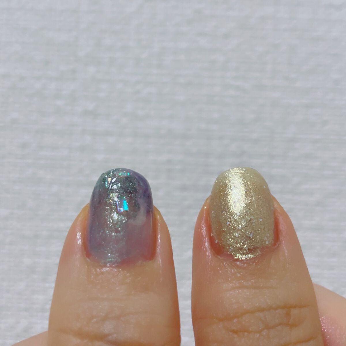 全体に厚めに塗ったあと指先だけ薄く2度塗り ザラザラな質感がかわいい💓 ゴールドラメだから肌からも浮かない🙌 落ち着いたカラーだからラメたっぷりだけど派手になりすぎないのが良い👍 どんな服にも合いそう🙆♀️