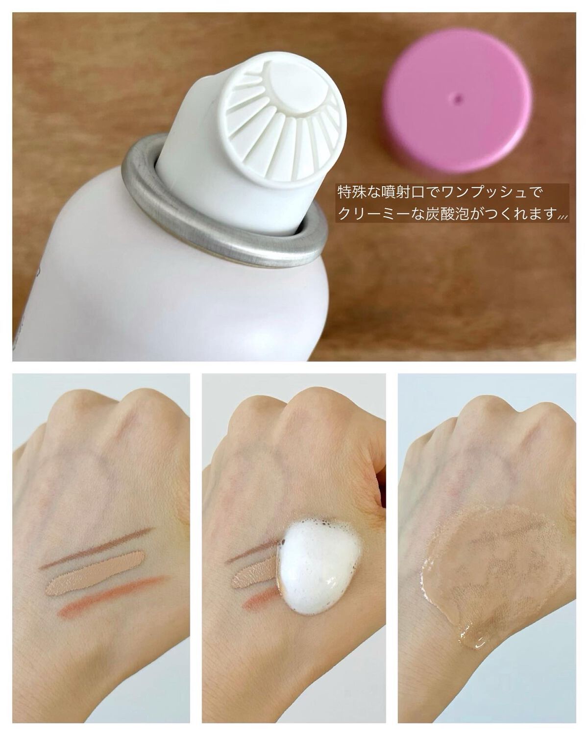 『プラスキレイ ピンク炭酸フォームクレンジング』は10,000ppmの炭酸がメイク汚れをやさしく浮かせてするんと落とす炭酸クレンジング。 泡からオイル状に変化し、メイク汚れや古い角質にもアプローチ。汚れを落としてクリアな素肌に導いてくれます。 使い方はとっても簡単。乾いた肌に泡を押し当てるようにハンドプレスし、泡がオイル状に変わったらメイク汚れを優しく馴染ませます。水で洗い流すとクレンジング完了です! 実際に使ってみると、初めはしっかり泡ですが数秒後に溶け始めてオイル状に!じゅわ〜っととろけて気持ちが良いです♪とろとろなので余計な摩擦なくオフできます!洗い上がりはつっぱらずしっとり♡メイクしない日も使いたくなるアイテムです。