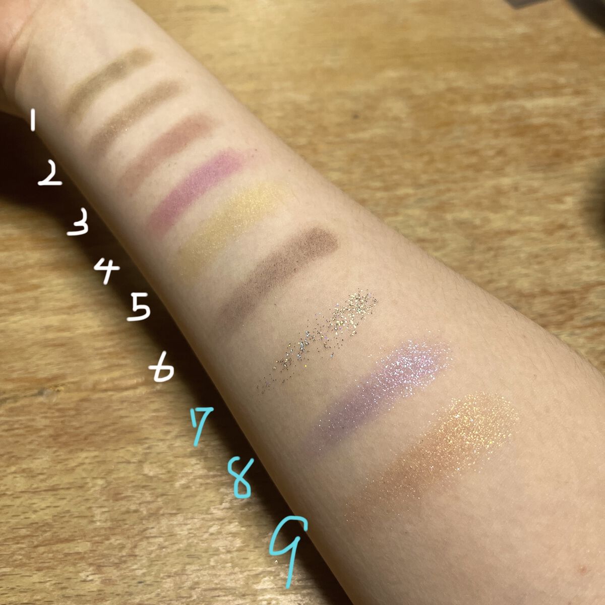 SUSISUGODDESS9EYESHADOW02中国コスメが気になっていたので、見た目で完全に購入したアイシャドウ。発色はとても良く、プチプラ価格にしては◎つけ心地としてはちゃんと乗るが、7番のラメは取れやすいので注意が必要。大粒のラメなの...