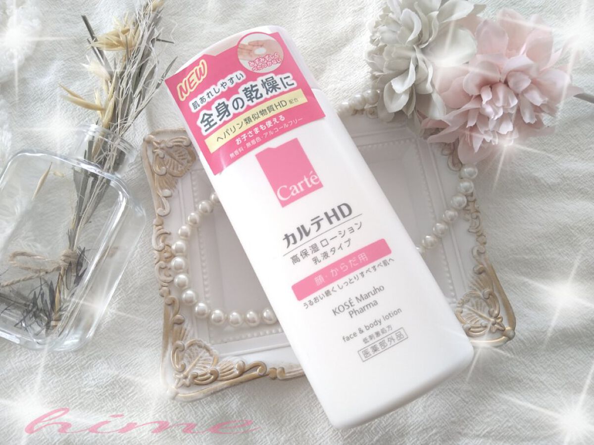 - 【高保湿フェイス&ボディローション】 顔にもからだにも。しっとりやわらか肌つづく。 信頼の保水有効成分「ヘパリン類似物質HD※」配合、低刺激処方の高機能フェイス&ボディローションです。 ヘパリン類似物質HDが、気温・湿度の変化で乾燥しやすいからだの肌のうるおい構造(角層ラメラ)を立て直し、しっとりやわらか肌に導きます。 2種のこだわりオイル配合で、しっとりするのにべたつかず、なめらかにのびひろがる使用感。敏感な肌でもまさつによるストレスがなく、全身をうるおいで満たします。 カルテHDシリーズとしては初めてお子さま(3歳以上)にもお使いいただける商品。 ・ボトルタイプ(220mL) ・ポンプタイプ(410mL) ・つめかえ用(370mL)の3種でラインアップ。 ご自身の保湿に、ご家族や大切なかたの保湿に。みずみずしくなめらかなうるおいが全身を包み込むフェイス&ボディローションです。 ※保水有効成分ヘパリン類似物質のこと <販売名:HD フェイスボディL>