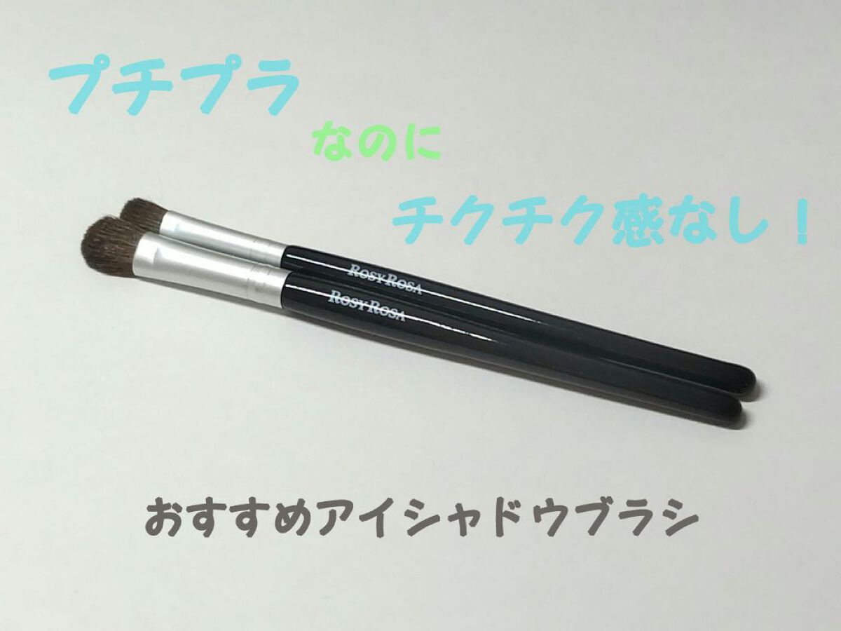 ロージーローザアイシャドウブラシセット ¥528天然毛100%のパウダーアイシャドウ専用ブラシ。大きいブラシはまぶた全体やフワッとぼかす用、小さいブラシはまぶたのキワや締め色にオススメ。チクチクせず、肌辺りが良かったです。アイシャドウをふんわ...