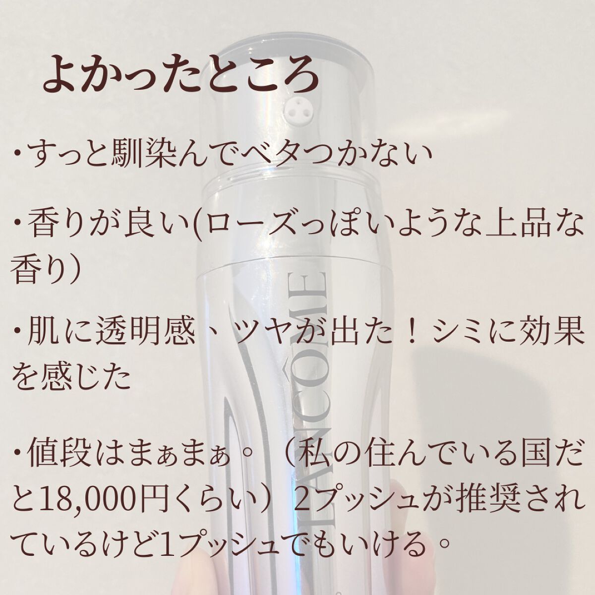 ❤️ランコムジェニフィック◎塗った後さらっとしていている◎外資系なので成分強くて効果ありそう(笑)特にアンチエイジング効果に期待。◯使ってなくて、久しぶりに使うとやっぱり肌の調子が良くなる。△SK-IIのトリートメントローションとは相性悪い。(後に塗るとぬるぬるする)ランコムの化粧水(クラリフィック)は微妙だったし。。 ❤️コスデコリポソームアドバンスド◎とにかく保湿力がすごい◎後の化粧水もどんどん入る。肌がふっくらする。◎SK-IIのトリートメントローションと相性良い。△コスパはジェニフィックの方が良さげ。 🌟今の所、冬はコスデコリポソームアドバンスド夏はランコムが良さげという結論に至ってます。🌟