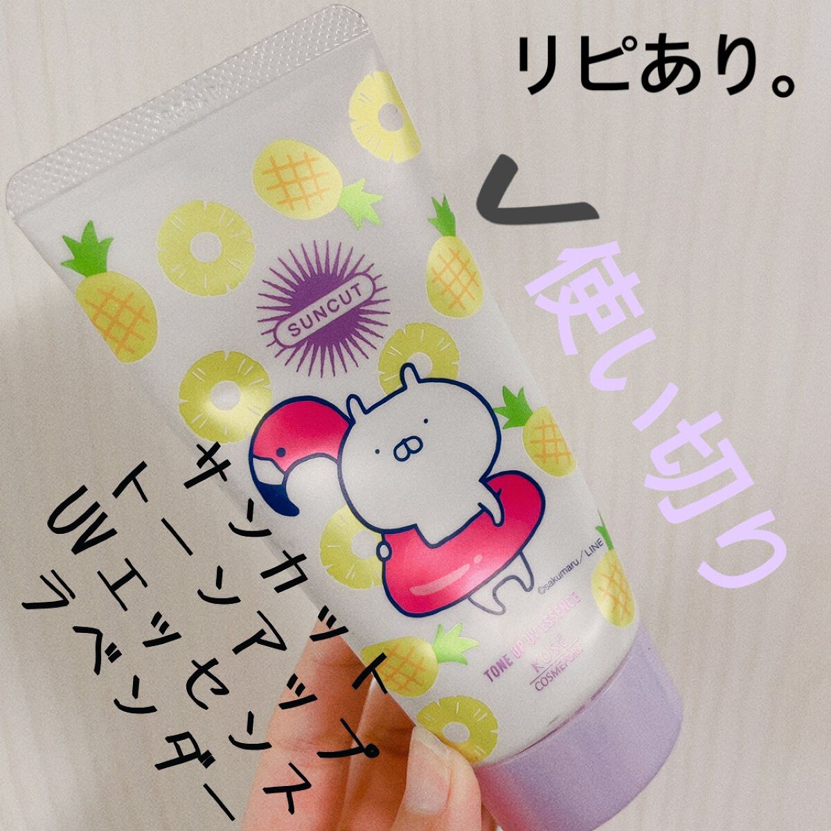 サンカット® トーンアップUV エッセンス ラベンダー うさまるパケ ピンクパールinって書いてたけどわからなかった きらきらしなくてよかった でも汗かくと混ざって白くなってるのは落ちてるってこと...?