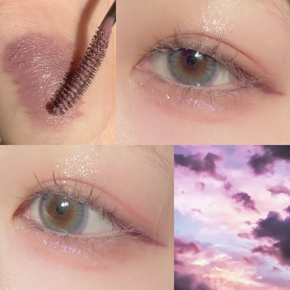 濃いめのピンクが可愛いです💞 青みに振り切ってる感じではなく、黄みも感じるピンクかな?と思います! お花の淡いピンクの部分はほぼ色は出ません! ラメの色みときらめきといった感じです✨✨ 今日のマスカラはあんまりわからないと思いますがモーヴ系です!