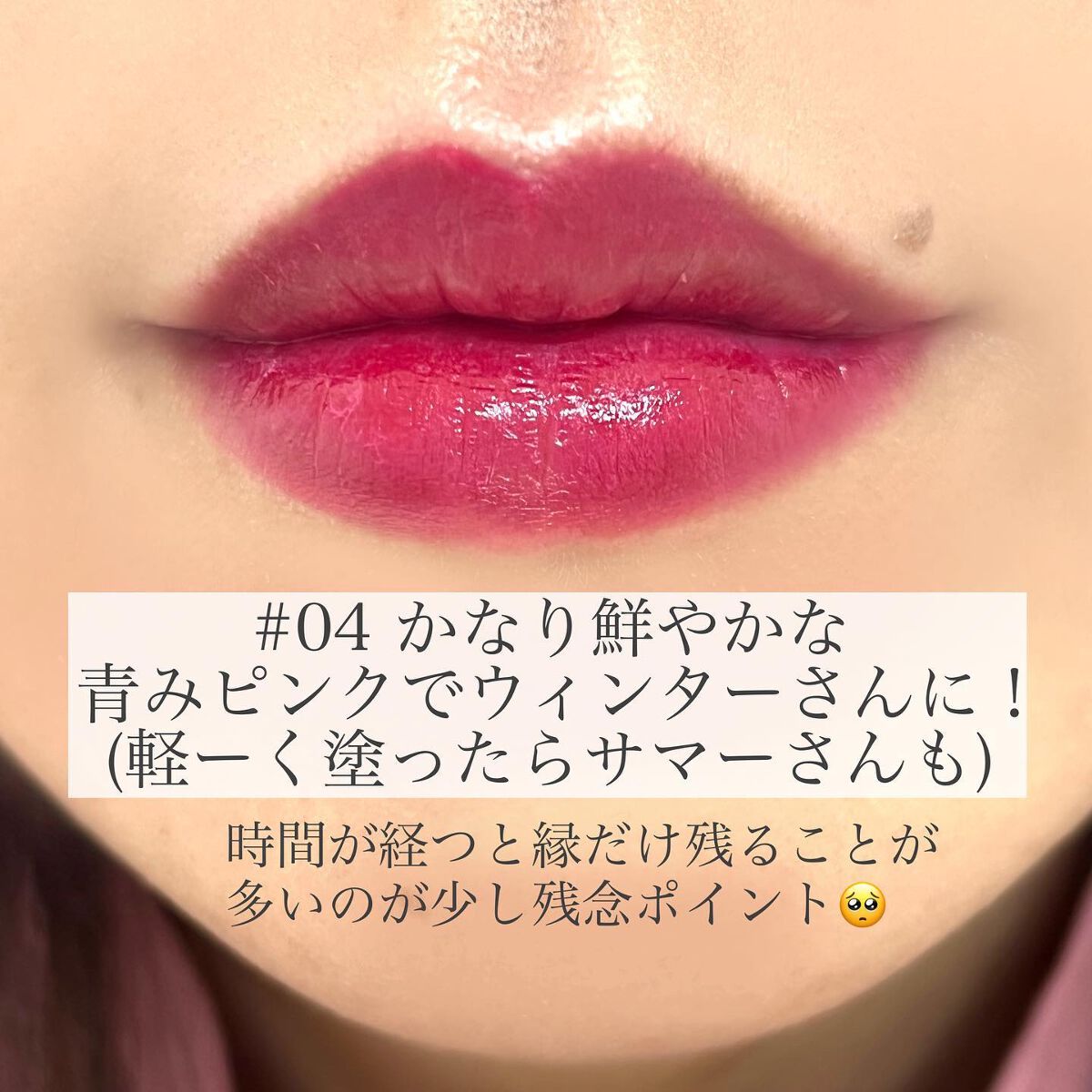 もーーーまずパッケージが可愛すぎるよね😢❤️❤️ 迷いなく全色買ってしまったよ…! 既存のジューシーラスティングティントに比べて ⚪︎サラッとしたリキッド ⚪︎やや薄づきな発色⚪︎艶々? 個人的にはロムアンドでは 最近こそ出るようになったけど ブルベ向きのカラー(特にサマー)でドンピシャが あんまり無いなあと思っていたので、 今回とっっても5〜8番が可愛くて ひじょーーーーーーに!満足しております💪❤️❤️