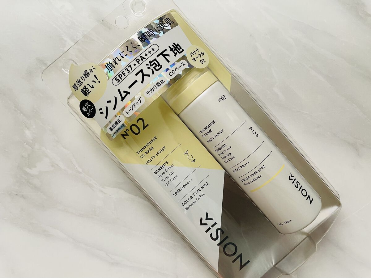 【軽泡ムース🫧バナナ色の密着下地】VIVISIONシンムースCCベースM02バナナオークル参考価格1,980円(税込)瑞々しい泡ででてくる化粧下地♡すごく伸ばしやすくてバババーっと塗りやすい◎毎回たくさん出しがちになってしまうからウェットティ...