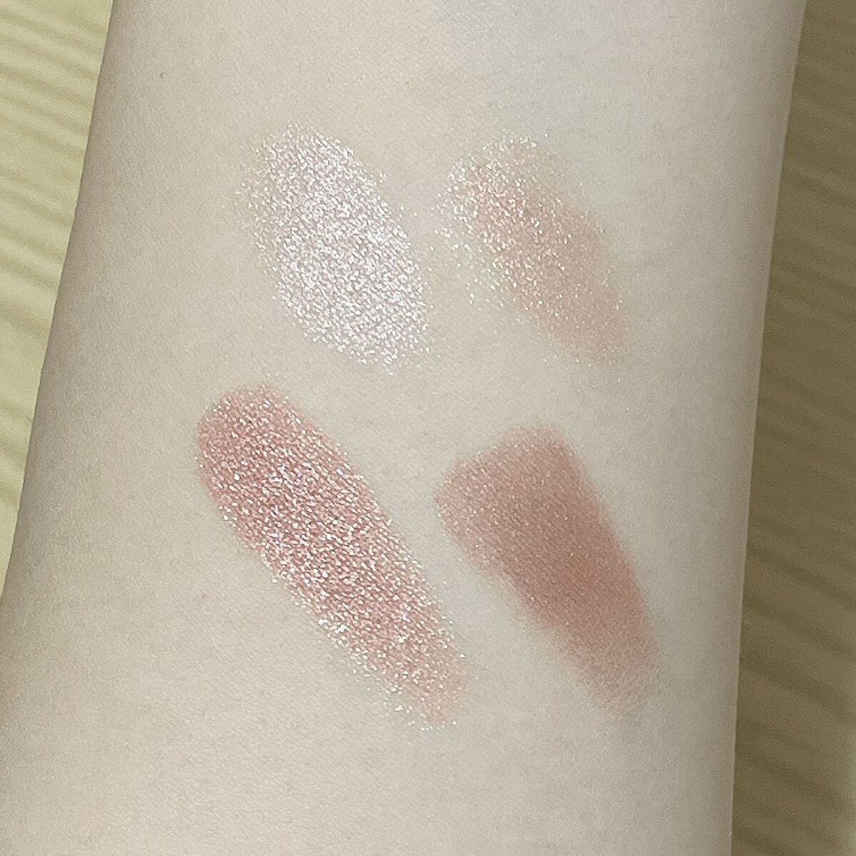今回の色はストロベリーコッパーという色で、ピンクブラウン系でとても可愛い色です💕 中でも左下のブラウンが好きで単色でも使いやすくて、ラメも少し入っていて可愛らしく1番使っている色になります! 質感も好きで、サラッとしていて塗りやすいのでまた新色とか限定色も気になったら買いたいなと思います!