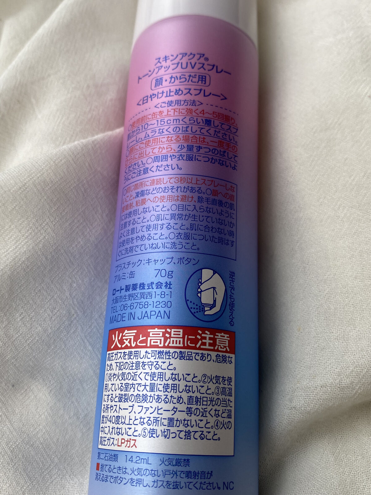 - 「スキンアクア トーンアップUVスプレー」は、UVカットしながら、色と光をコントロールし、肌をトーンアップ*1。 あなただけの透明感*1を引き出すラベンダーカラーの顔・からだ用日やけ止め。 すーっとのびて、さらりとした使い心地。日やけ止めを塗っているだけなのに、透明感*1のある肌に。 透明感ブルー×血色感ピンク=ラベンダーカラーで、ナチュラルな透明感を演出! 日光や光を反射し、肌の透明感をあげながら*1立体的にツヤめく微細なストロボパール*2配合。 スキンケア成分(保湿成分)としてヒアルロン酸Na、ビタミンC誘導体*3、ピュアニュアンスコンプレックス*4配合。 使用前に缶を上下に強く4~5回振り、肌から10~15cmくらい離してスプレーし、ムラなくのばしてください。 缶は上下逆さまでも使えます。ときめくサボンの香り。 スーパーウォータープルーフ。せっけんで落とせます。 防腐剤フリー。鉱物油フリー。アレルギーテスト済み(全ての方にアレルギーが起こらないというわけではありません。) *1:メイクアップ効果による *2:酸化チタン、マイカ(光沢剤) *3:リン酸アスコルビルMg *4:クダモノトケイソウ果実エキス、プルーン分解物、イザヨイバラエキス 紫外線防止成分:紫外線吸収剤