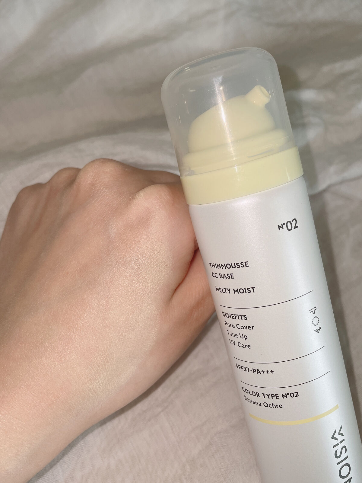 【軽泡ムース🫧バナナ色の密着下地】VIVISIONシンムースCCベースM02バナナオークル参考価格1,980円(税込)瑞々しい泡ででてくる化粧下地♡すごく伸ばしやすくてバババーっと塗りやすい◎毎回たくさん出しがちになってしまうからウェットティ...