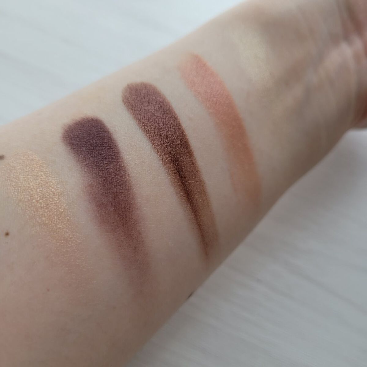 アースカラーのブラウンやベージュに、鮮やかなピーチコーラルをアクセントにしたコーラルハーモニー。トワルドゥジュイの箔押しは少し使っただけで消えてしまった🥹ベージュ系パレットはあんまり似合わないから普段買わないけど...!真ん中に赤もあるしコー...