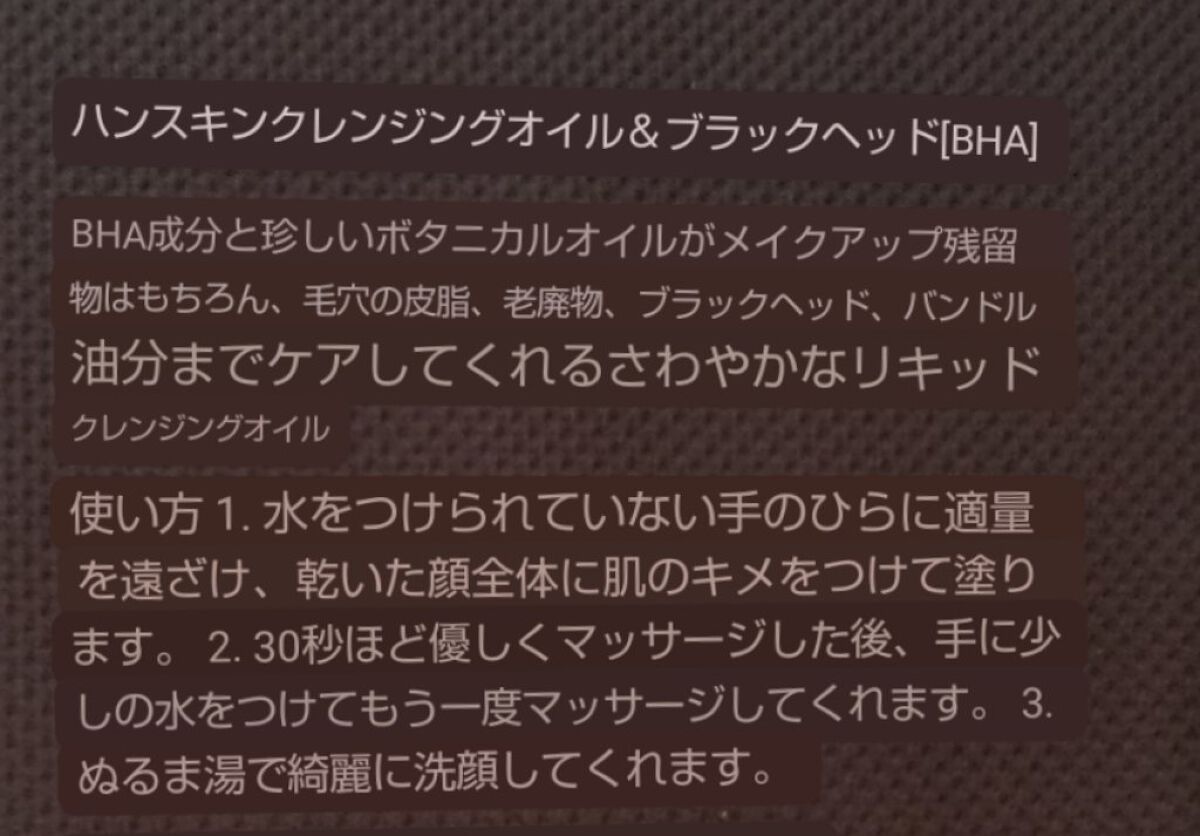 商品詳細情報ハンスキン クレンジングオイル&ブラックヘッド(PHA)