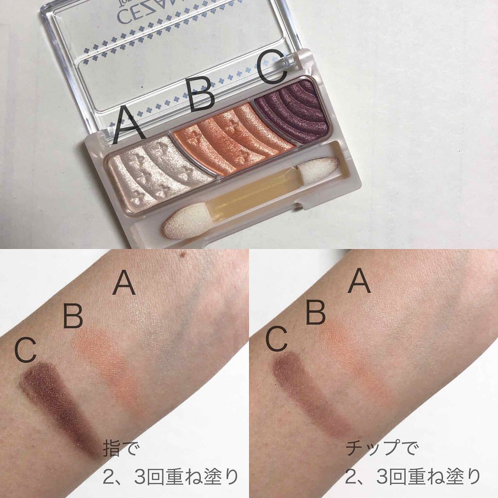 - 3色で簡単に明るく大きな目元に。 しっとり感触のアイシャドウ。 くすみを飛ばす明るさベース、ひとえ・奥二重の方でも幅広く塗れる肌なじみの良い中間色、 濃密高発色の締め色が目の輪郭を強調し大きな目元に。 微細パール配合でくすみを飛ばし、明るい目元へ。