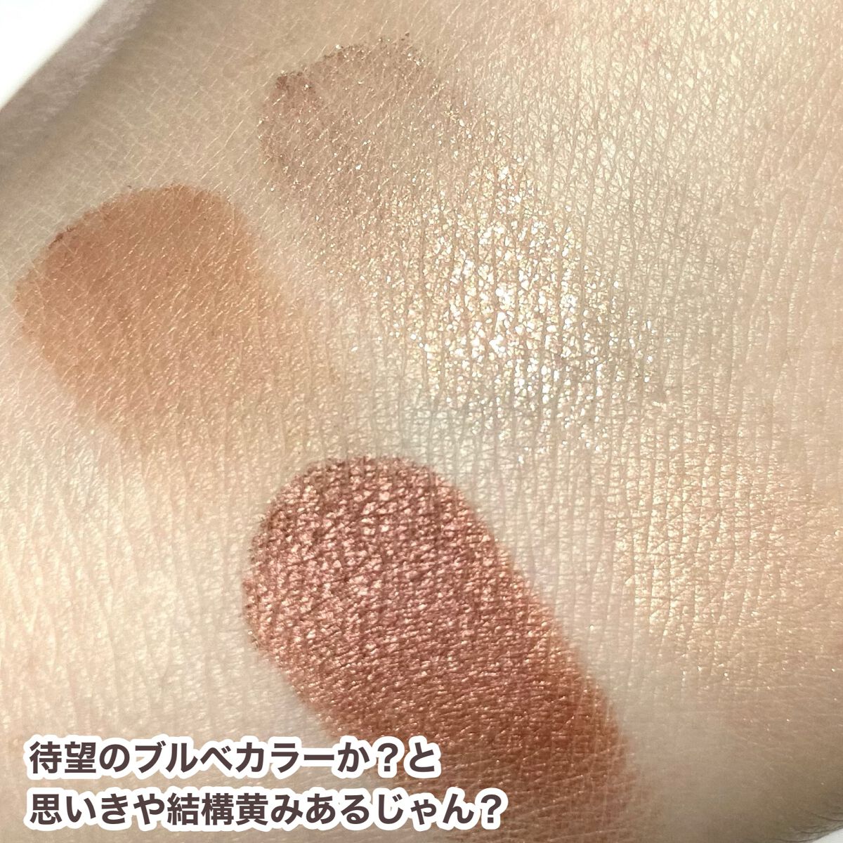 - ラメ・パール・マット3質感の4色アイシャドウ。 肌馴染みの良いベージュを基調としたカラー。ラメ・パール・マットの3質感を重ねて、自然にまぶたを強調し奥行のある大きな目元へ。 しっとり溶け込むような柔らかなパウダーなので、スルスル伸びてまぶたにピタッと密着。保湿成分(スクワラン・ホホバ種子油)配合。
