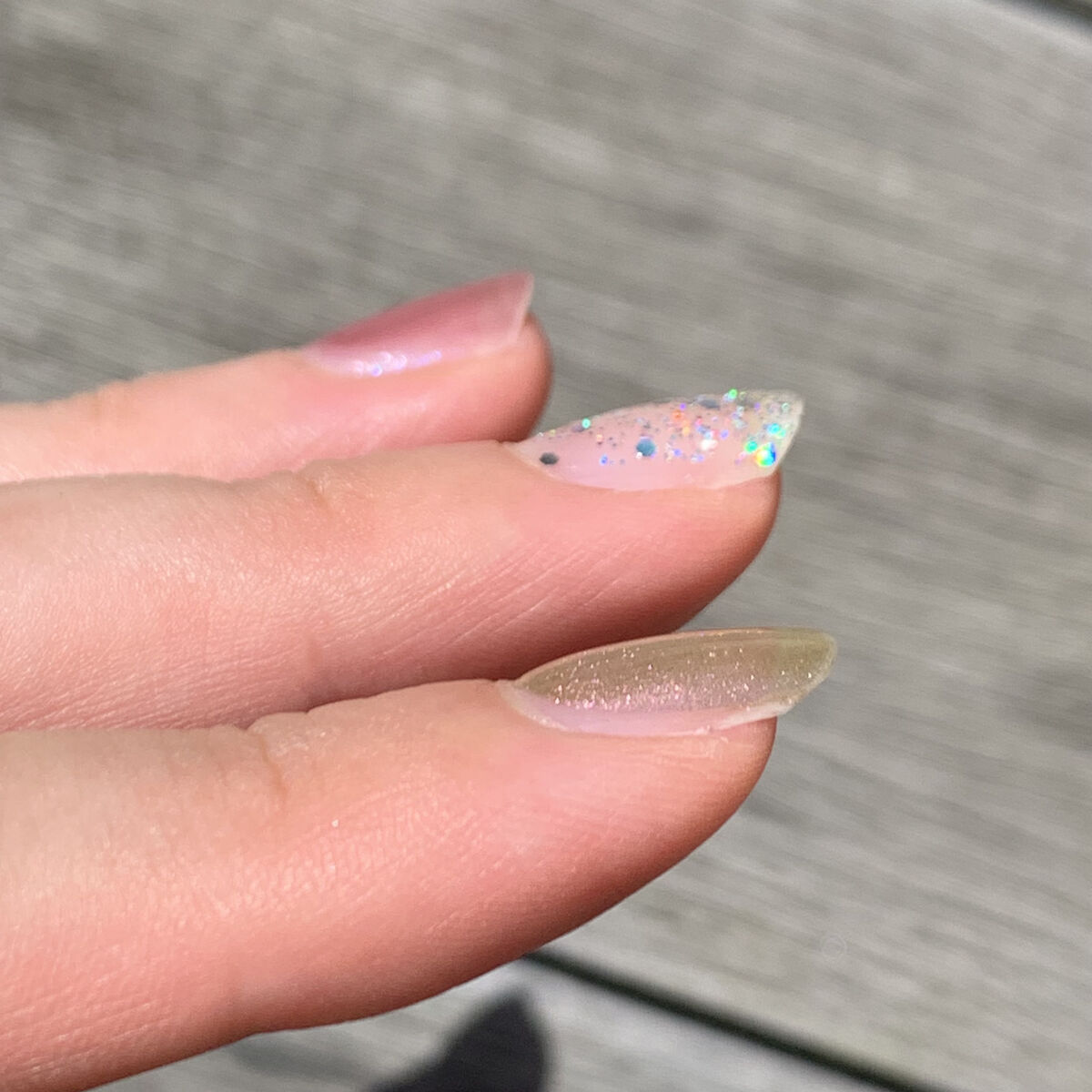 グリッターをシリコンチップでのせる。▶︎ロフトファクトリーシリコンチップWもっとたくさん入って売ってるのないかな?...