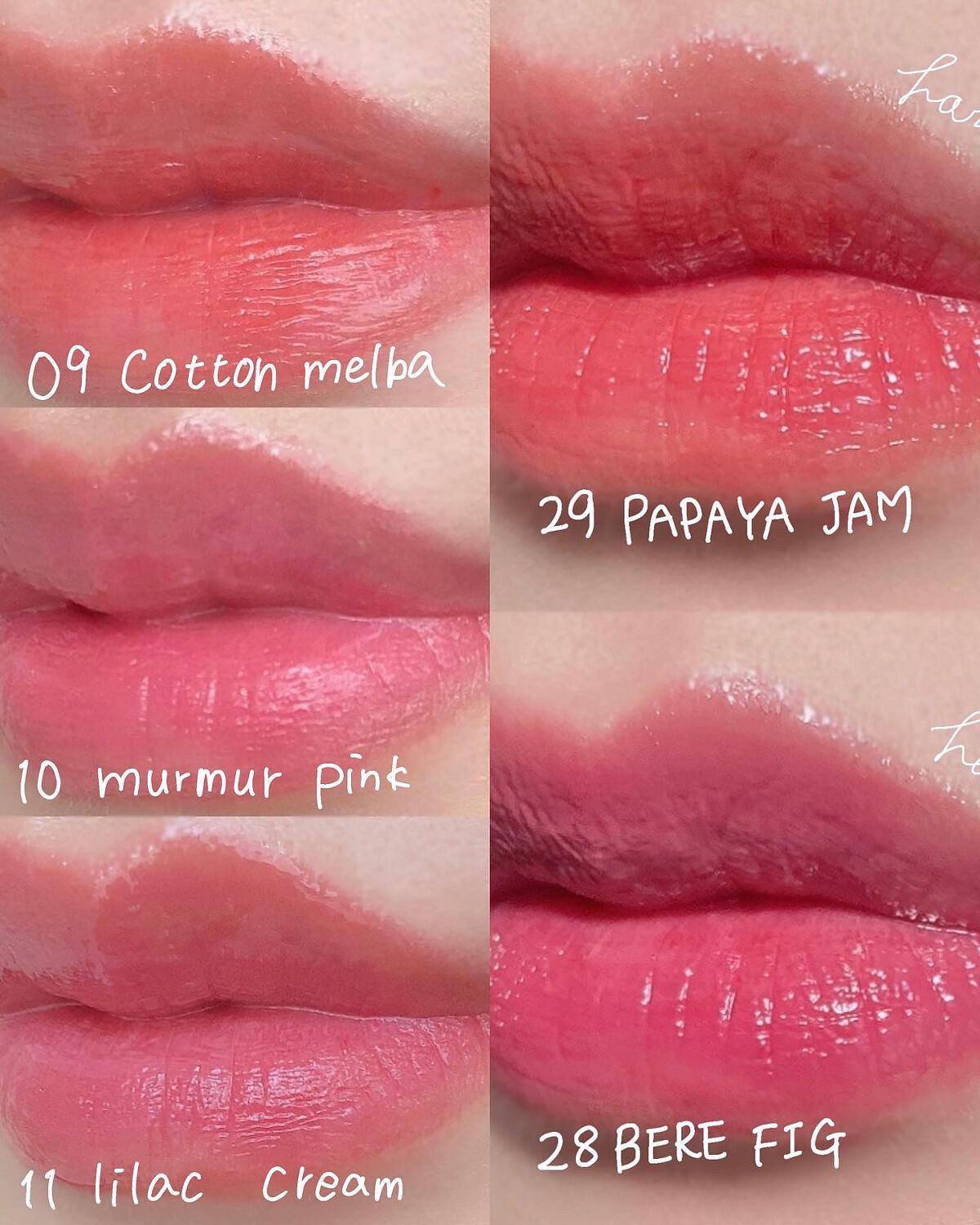 - <01 インコーラル> 水、ビスジグリセリルポリアシルアジペート-2、グリセリン、ジフェニルジメチコン、ジフェニルシロキシフェニルトリメチコン、ポリグリセリン-3、リンゴ酸ジイソステアリル、水添ポリイソブテン、ポリブテン、トリメチルシロキシフェニルジメチコン、変性アルコール、ポリソルベート60、イソノナン酸イソノニル、ペンチレングリコール、(アクリル酸ヒドロキシエチル/アクリロイルジメチルタウリンNa)コポ リマー、ラベンダーエキス、ハナハッカ花/葉/茎エキス、ローズマリーエキス、タイムエキス、ステアリン酸グリセリル、ステアリン酸PEG-100、スクワラン、ラウリルPEG-10トリス(トリメチルシロキシ)シリルエチルジメチコン、エチルヘキシルグリセリン、デキストリン、ステビオシド、イソステアリン酸ソルビタン、エチレンジアミンジコハク酸3Na、水酸化Al、ポリアクリル酸アンモニウム、BG、トコフェロール、フェノキシエタノール、香料、リモネン、酸化チタン、黄5、赤227、黄4、青1 <03 イフローズ> 水、ビスジグリセリルポリアシルアジペート-2、グリセリン、ジフェニルジメチコン、ジフェニルシロキシフェニルトリメチコン、ポリグリセリン-3、リンゴ酸ジイソステアリル、水添ポリイソブテン、ポリブテン、トリメチルシロキシフェニルジメチコン、変性アルコール、ポリソルベート60、イソノナン酸イソノニル、ペンチレングリコール、(アクリル酸ヒドロキシエチル/アクリロイルジメチルタウリンNa)コポリマー、ラベンダーエキス、ハナハッカ花/葉/茎エキス、ローズマリーエキス、タイムエキス、ステアリン酸グリセリル、ステアリン酸PEG-100、スクワラン、ラウリルPEG-10トリス(トリメチルシロキシ)シリルエチルジメチコン、エチルヘキシルグリセリン、デキストリン、ステビオシド、トリイソステアリン酸ポリグリセリル-2、イソステアリン酸ソルビタン、エチレンジアミンジコハク酸3Na、水酸化Al、ポリアクリル酸アンモニウム、BG、トコフェロール、フェノキシエタノール、香料、リモネン、酸化チタン、黄5、赤227、青1、黄4、赤218 <04 チリアップ> 水、ビスジグリセリルポリアシルアジペート-2、グリセリン、ジフェニルジメチコン、ジフェニルシロキシフェニルトリメチコン、ポリグリセリン-3、リンゴ酸ジイソステアリル、水添ポリイソブテン、ポリブテン、トリメチルシロキシフェニルジメチコン、変性アルコール、ポリソルベート60、イソノナン酸イソノニル、ペンチレングリコール、(アクリル酸ヒドロキシエチル/アクリロイルジメチルタウリンNa)コポ リマー、ラベンダーエキス、ハナハッカ花/葉/茎エキス、ローズマリーエキス、タイムエキス、ステアリン酸グリセリル、ステアリン酸PEG-100、スクワラン、ラウリルPEG-10トリス(トリメチルシロキシ)シリルエチルジメチコン、エチルヘキシルグリセリン、デキストリン、ステビオシド、イソステアリン酸ソルビタン、エチレンジアミンジコハク酸3Na、トコフェロール、BG、フェノキシエタノール、料、リモネン、黄5、赤227、黄4、青1 <06 チュリアン> 水、ビスジグリセリルポリアシルアジペート-2、グリセリン、ジフェニルジメチコン、ジフェニルシロキシフェニルトリメチコン、ポリグリセリン-3、リンゴ酸ジイソステアリル、水添ポリイソブテン、ポリブテン、トリメチルシロキシフェニルジメチコン、変性アルコール、ポリソルベート60、イソノナン酸イソノニル、ペンチレングリコール、(アクリル酸ヒドロキシエチル/アクリロイルジメチルタウリンNa)コポリマー、ラベンダーエキス、ハナハッカ花/葉/茎エキス、ローズマリーエキス、タイムエキス、ステアリン酸グリセリル、ステアリン酸PEG-100、スクワラン、ラウリルPEG-10トリス(トリメチルシロキシ)シリルエチルジメチコン、エチルヘキシルグリセリン、デキストリン、ステビオシド、イソステアリン酸ソルビタン、エチレンジアミンジコハク酸3Na、水酸化Al、ポリアクリル酸アンモニウム、BG、トコフェロール、フェノキシエタノール、香料、リモネン、酸化チタン、黄5、赤227、酸化鉄、黄4、赤218、青1 <08 ベリーディヴァイン> 水、ビスジグリセリルポリアシルアジペート-2、グリセリン、ジフェニルジメチコン、ジフェニルシロキシフェニルトリメチコン、ポリグリセリン-3、リンゴ酸ジイソステアリル、水添ポリイソブテン、ポリブテン、トリメチルシロキシフェニルジメチコン、変性アルコール、ポリソルベート60、イソノナン酸イソノニル、ペンチレングリコール、(アクリル酸ヒドロキシエチル/アクリロイルジメチルタウリンNa)コポリマー、ラベンダーエキス、ハナハッカ花/葉/茎エキス、ローズマリーエキス、タイムエキス、ステアリン酸グリセリル、ステアリン酸PEG-100、スクワラン、ラウリルPEG-10トリス(トリメチルシロキシ)シリルエチルジメチコン、エチルヘキシルグリセリン、イソステアリン酸ソルビタン、デキストリン、ステビオシド、エチレンジアミン