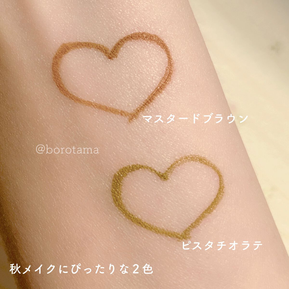 しっかりグリーンのアイライナー!沢山使ったのでレポします🤭 こちらのピスタチオラテはいくら描き重ねても色が変わらず、重宝しました✨ テラコッタメイクやピンクメイクに合わせるのがお気に入り。ホワイトのアイライナーを二重ラインに引いて抹茶ラテメイクみたいにするのも可愛いです。