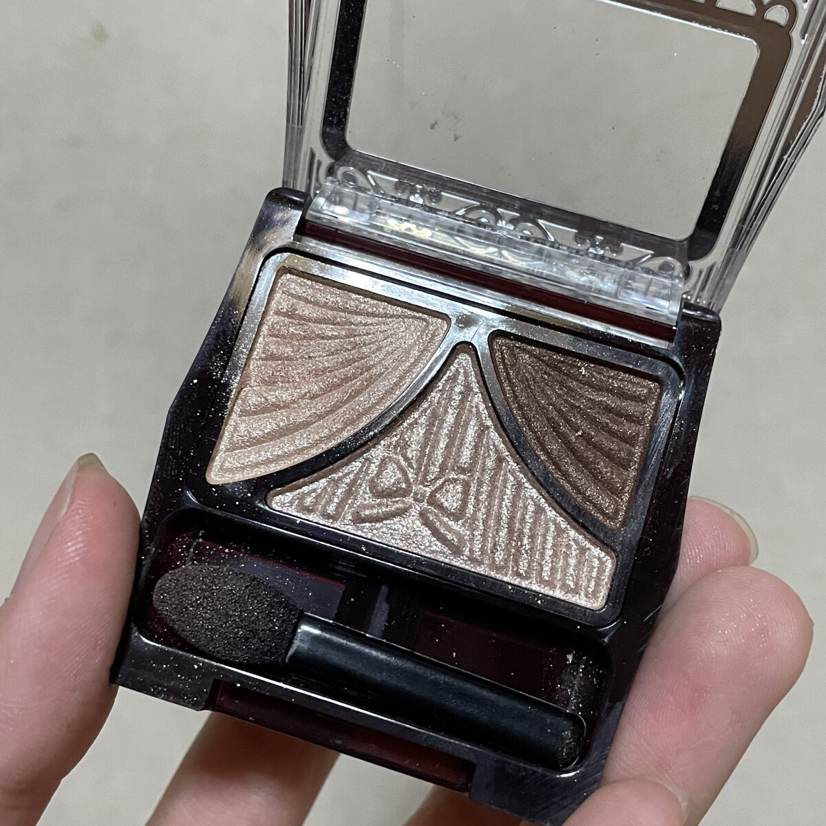 黄味、かったブラウンのアイシャドウパレット ⇒イエベさん向きです🙌 大粒のラメが入っています 何種類かのラメが入っていて飽きずに楽しむことができます🙌 混ぜても使えるし、単色でも使えるし使い方が豊富です👏👏 発色もよく使えるのですが、右下の締め色に使っているものは、濃くは発色してくれず、締めれているのか疑問です(笑) 10色入っているので組み合わせを楽しんだり、新たなアイメイクとの出会い、グラデーションを作って楽しんでメイクができるアイシャドウパレットだと思いました!😳 機会があれば他のプロ アイ パレットも欲しいと思いました!!
