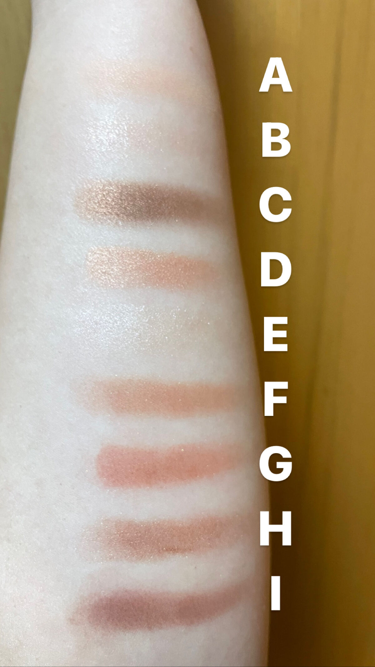 100円とは思えない発色の良さで、ラメが細かいものからグリッターまで色・質感が違うものが入っています イエベ向きの無難なブラウンで使いやすい🙆♀️ 全体的に粉飛び、崩れやすさがあるので、アイシャドウベースを使った方がいいと思います🦖⋆͛