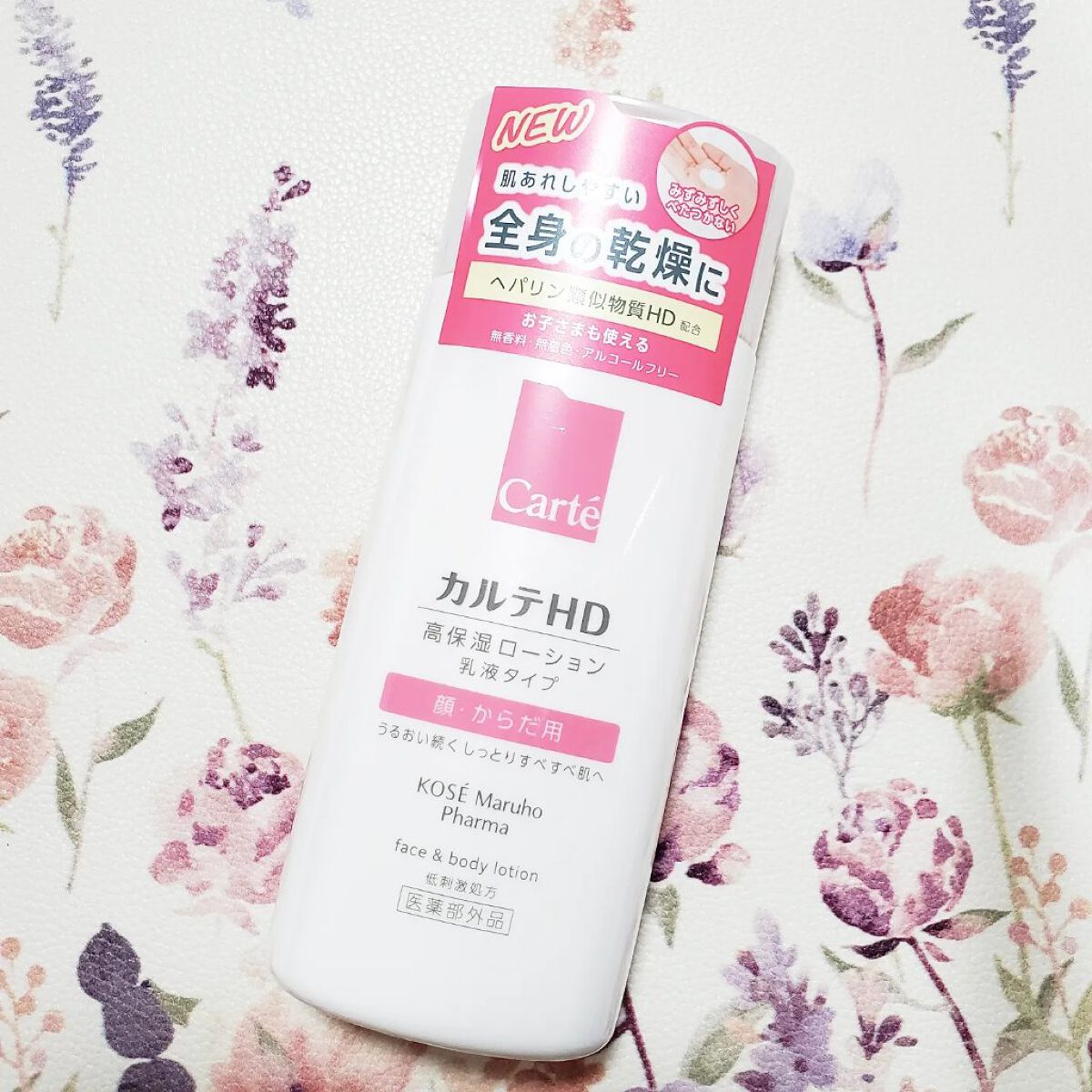 - 【高保湿フェイス&ボディローション】 顔にもからだにも。しっとりやわらか肌つづく。 信頼の保水有効成分「ヘパリン類似物質HD※」配合、低刺激処方の高機能フェイス&ボディローションです。 ヘパリン類似物質HDが、気温・湿度の変化で乾燥しやすいからだの肌のうるおい構造(角層ラメラ)を立て直し、しっとりやわらか肌に導きます。 2種のこだわりオイル配合で、しっとりするのにべたつかず、なめらかにのびひろがる使用感。敏感な肌でもまさつによるストレスがなく、全身をうるおいで満たします。 カルテHDシリーズとしては初めてお子さま(3歳以上)にもお使いいただける商品。 ・ボトルタイプ(220mL) ・ポンプタイプ(410mL) ・つめかえ用(370mL)の3種でラインアップ。 ご自身の保湿に、ご家族や大切なかたの保湿に。みずみずしくなめらかなうるおいが全身を包み込むフェイス&ボディローションです。 ※保水有効成分ヘパリン類似物質のこと <販売名:HD フェイスボディL>
