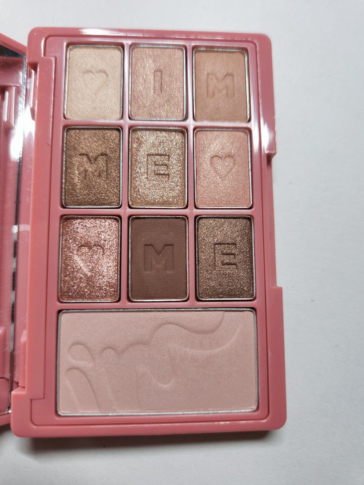 アイムミミのアイシャドウパレット(ラブカード)写真では分かりにくいですが、2つのトランプ風の絵柄が楽しめるかわいいパッケージ。大きめの鏡,9つのアイシャドウカラーと1つのチークで小さいのに万能です(σ・ω・)σ...