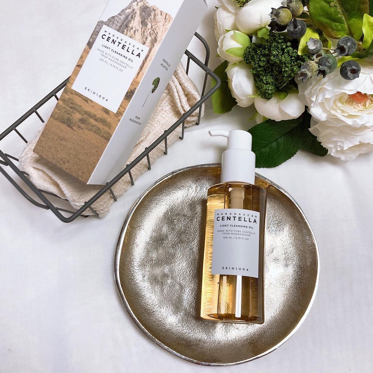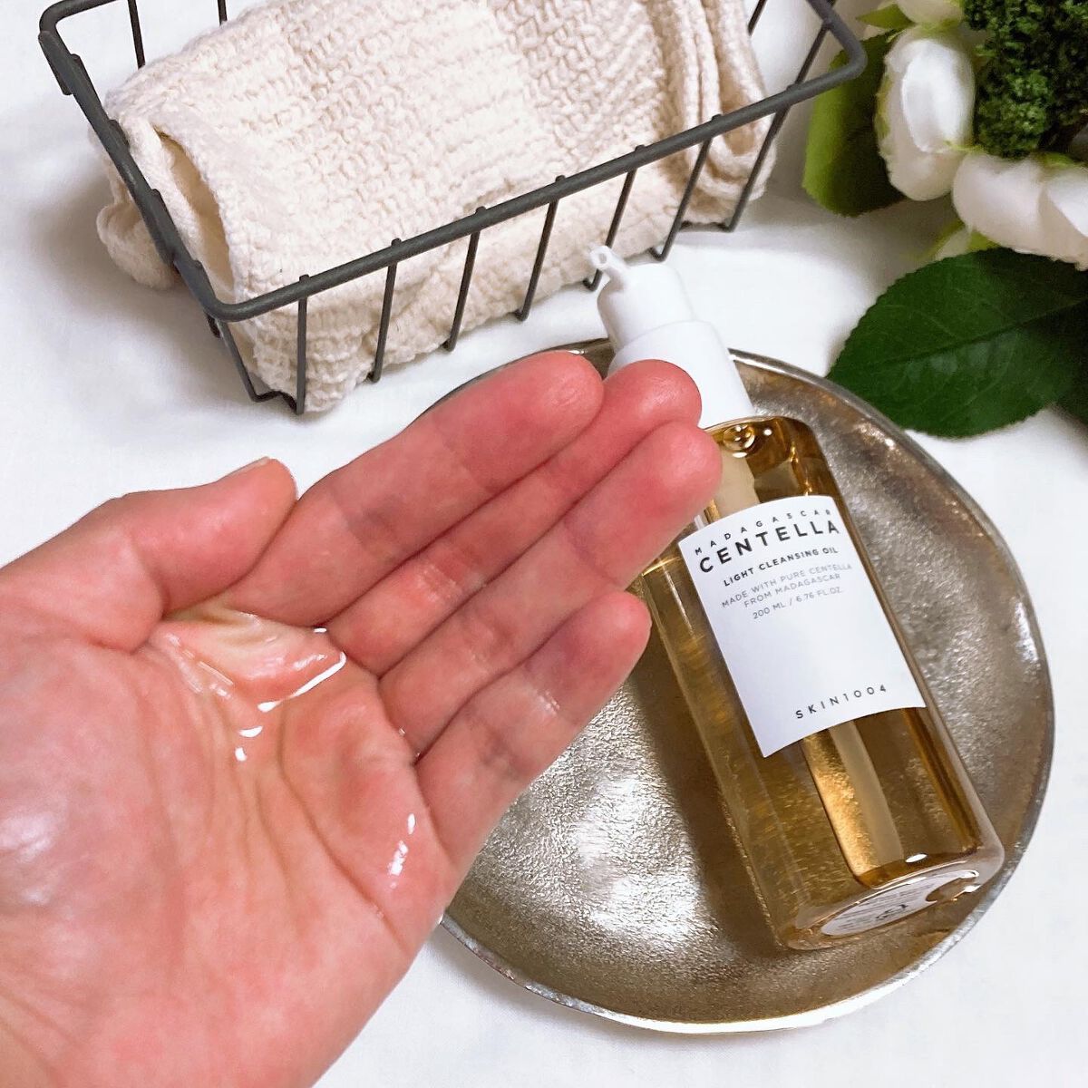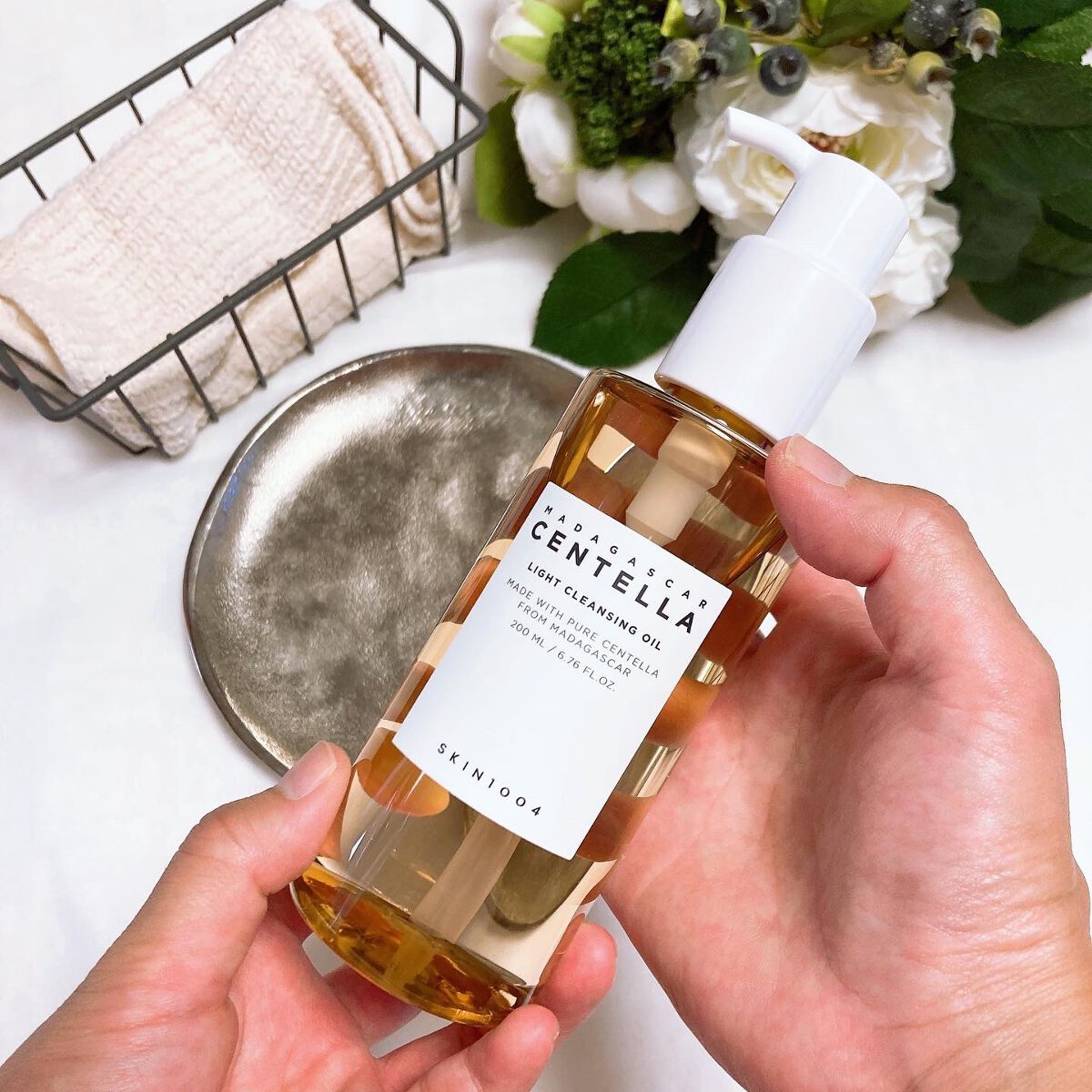 SKIN1004センテラライトクレンジングオイル水に触れた瞬間にすばやく乳化メイクの汚れや毛穴の汚れを洗浄してくれるそうすばやい乳化でメイクや毛穴汚れを素早くオフミセル粒子が肌の老廃物を吸着し汚れをオフツボクサエキスと植物由来の油分で肌のキメ...