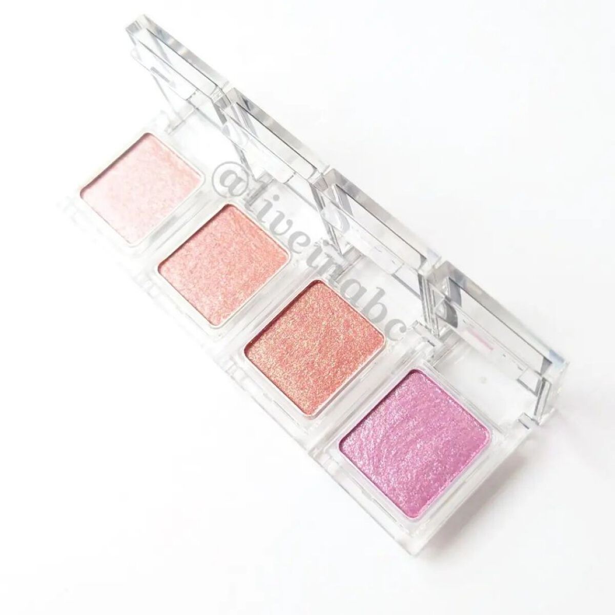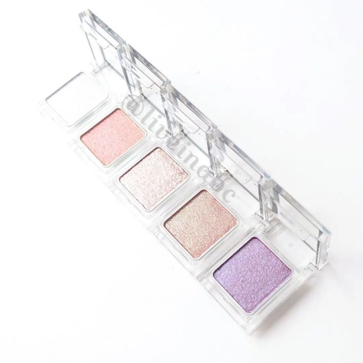 右上のピンクの使い方次第でかなり違ったルックになりますねー。 ディオールの偏光グリーンもスックのピスタチオグリーンも綺麗だなーとは思うんですが…使いこなせない、というよりときめかない!! 韓国コスメの大粒ギラギラ感も大好きですが、デパコスの上品なのにキラッキラなラメを使うと心が満たされます…❤ 明雫は見た目より薄付きのラベンダーに多色ラメ、陽雫はピンクベージュに多色ラメでどちらも露桐に合わせやすいです✨