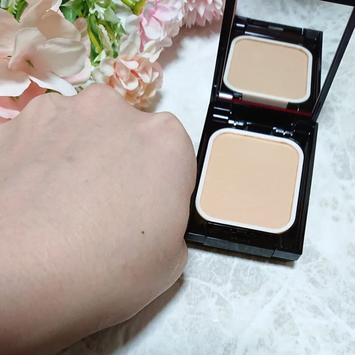 ふんわりとした仕上がりながら自然なツヤ感を演出するパウダーファンデ◎ 資生堂独自の「ムースプレス製法」により、美容液水とパウダーをムース状にして固めた軽やかなテクスチャーが特徴です。 肌に溶け込むようななめらかなフィット感で、毛穴や色ムラをふんわりとカバーしてくれる感じ。