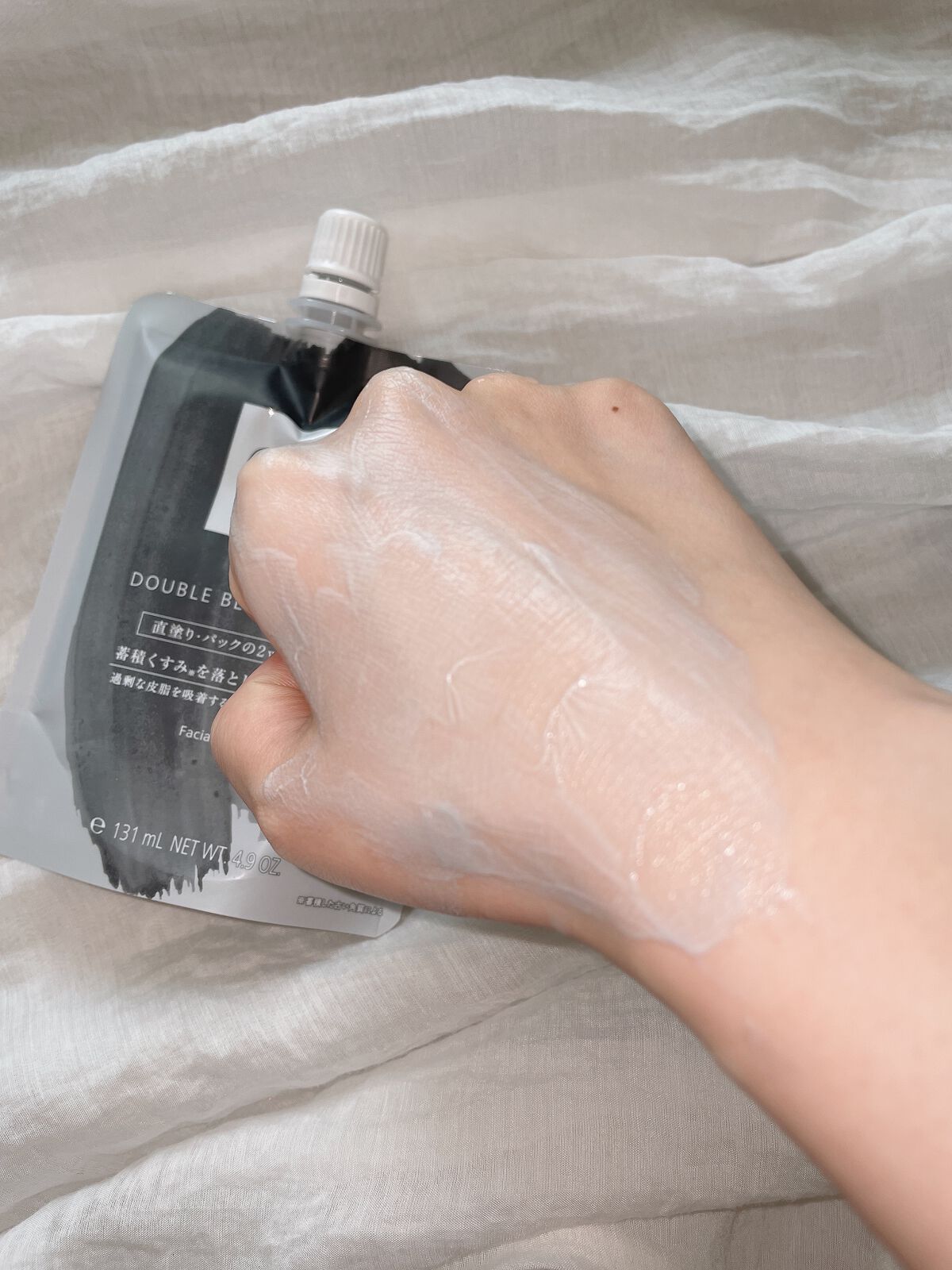 - <140g> 水、DPG、ベントナイト、ヤシ脂肪酸K、グリセリン、リン酸アスコルビルMg、BG、EDTA-2Na、EDTA-3Na、カオリン、タナクラクレイ、トリラウレス-4リン酸、ポリソルベート80、リンゴ酸ジイソステアリル、水酸化Al、炭、乳酸、フェノキシエタノール、香料、酸化チタン