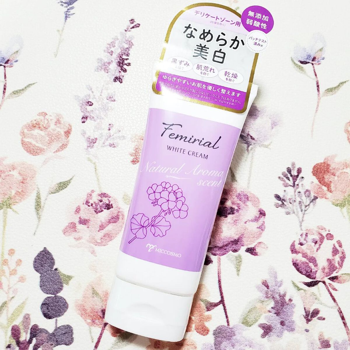 デリケートゾーンやボディの黒ずみ、くすみを有効成分がトーンアップする薬用美白クリームです。 下着などの摩擦で肌荒れしたお肌を抗炎症成分(グリチルリチン酸2K)が優しく整えます。 女性の身体を考えた6種の植物エキス、美容成分がしっとり保湿し、なめらかな素肌へと導きます。 87%天然由来成分、弱酸性処方でパッチテスト済み。 デリケートゾーン用のクリームとは思えないおしゃれで可愛いパッケージです😊 なめらかなテクスチャーのクリームです。良く伸びて塗りやすい✨ 保湿力はしっかりありますが、ベタベタしないからすぐに服を着用できるのが良かったです! ホワイトシャルルの香りは女性ホルモンを整えてくれる効果もあるそう😊 50gで約150回分なので、毎日のケアに続けたいと思います🙌💕
