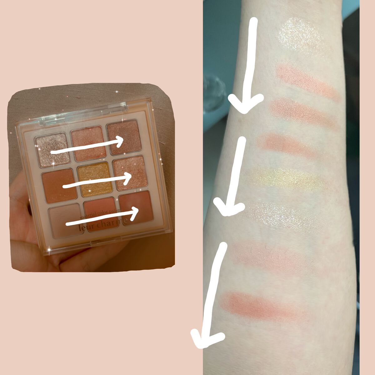 leurcharme マテリアルカラーパレット 02 タルトタタンポム 💛🍊スウォッチしてみました!一度塗りでこの発色!ラメの可愛さ!もう手離せないお気に入りコスメです!これを使ったメイクの仕方は投稿しているのでそちらも是非見てみてください...